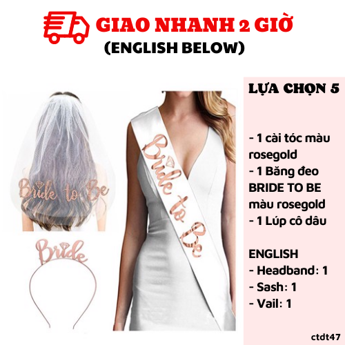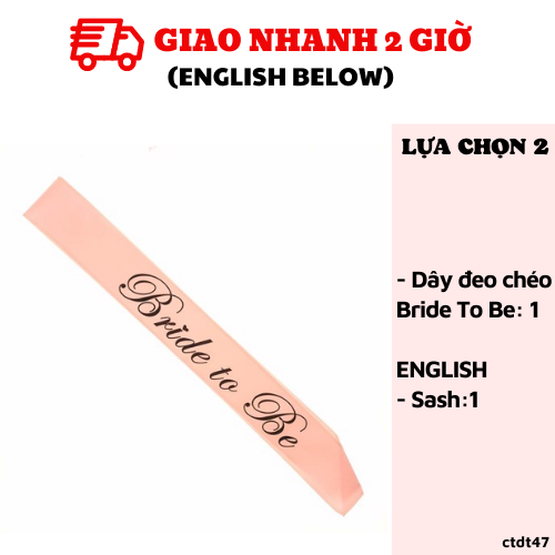 - Dây đeo chéo "Bride To Be" như hình: 1
