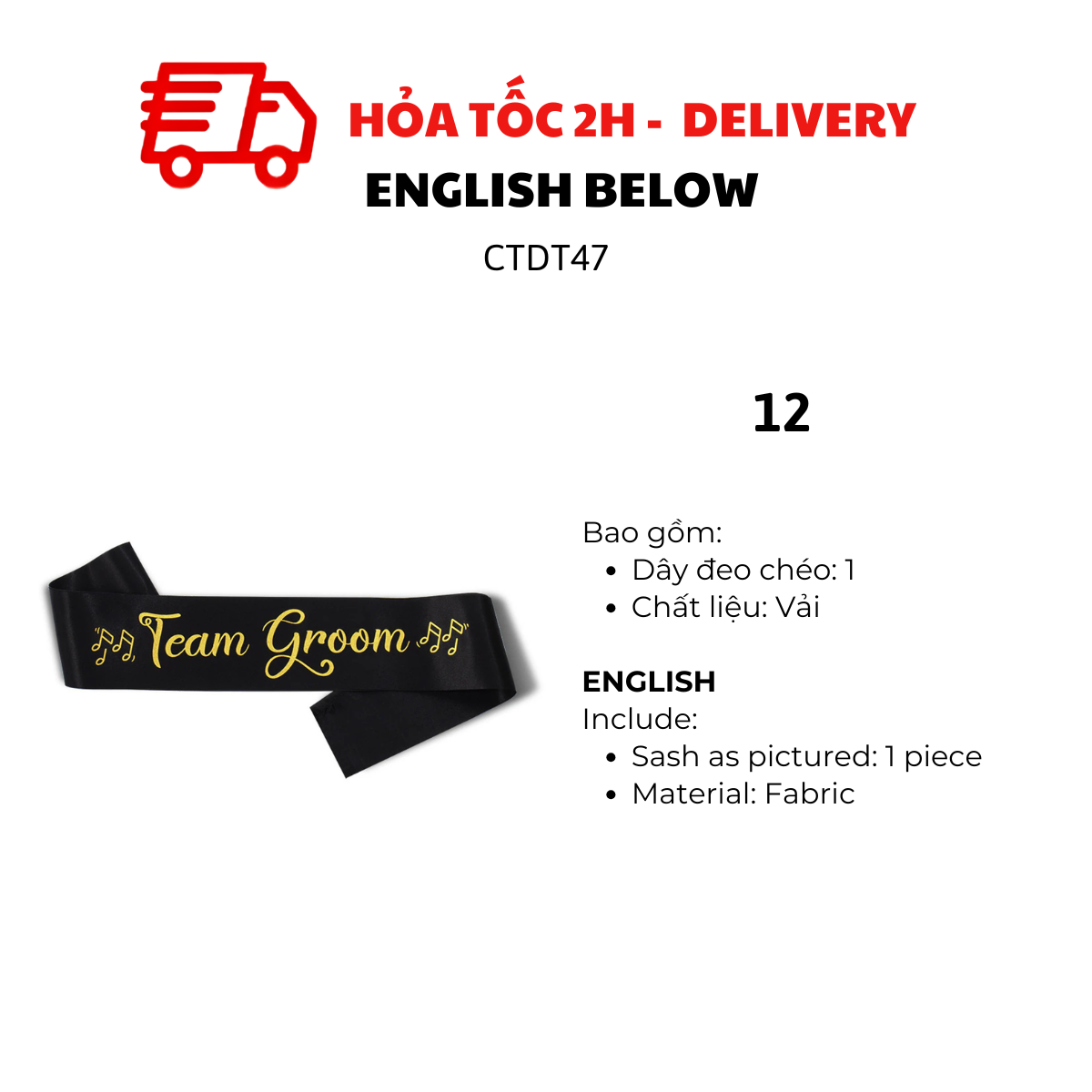 - Dây đeo chéo "Team Groom" như hình: 1