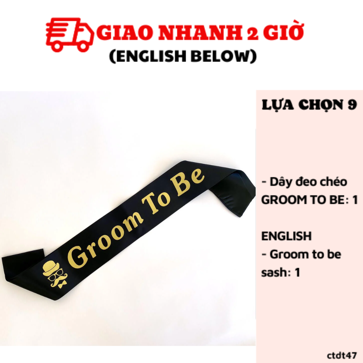 - Dây đeo chéo "Groom To Be" như hình: 1
