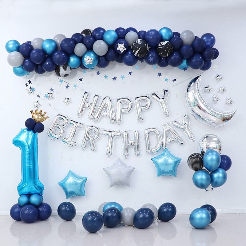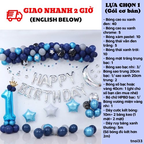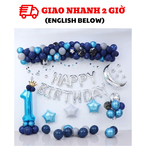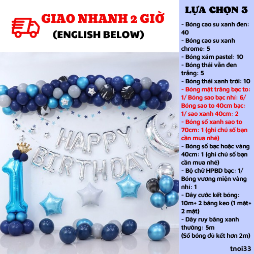 3. Bóng mặt trăng bạc to: 1/ Bóng sao bạc nhí: 6/ Bóng sao to 40cm bạc: 1/ sao xanh 40cm: 2