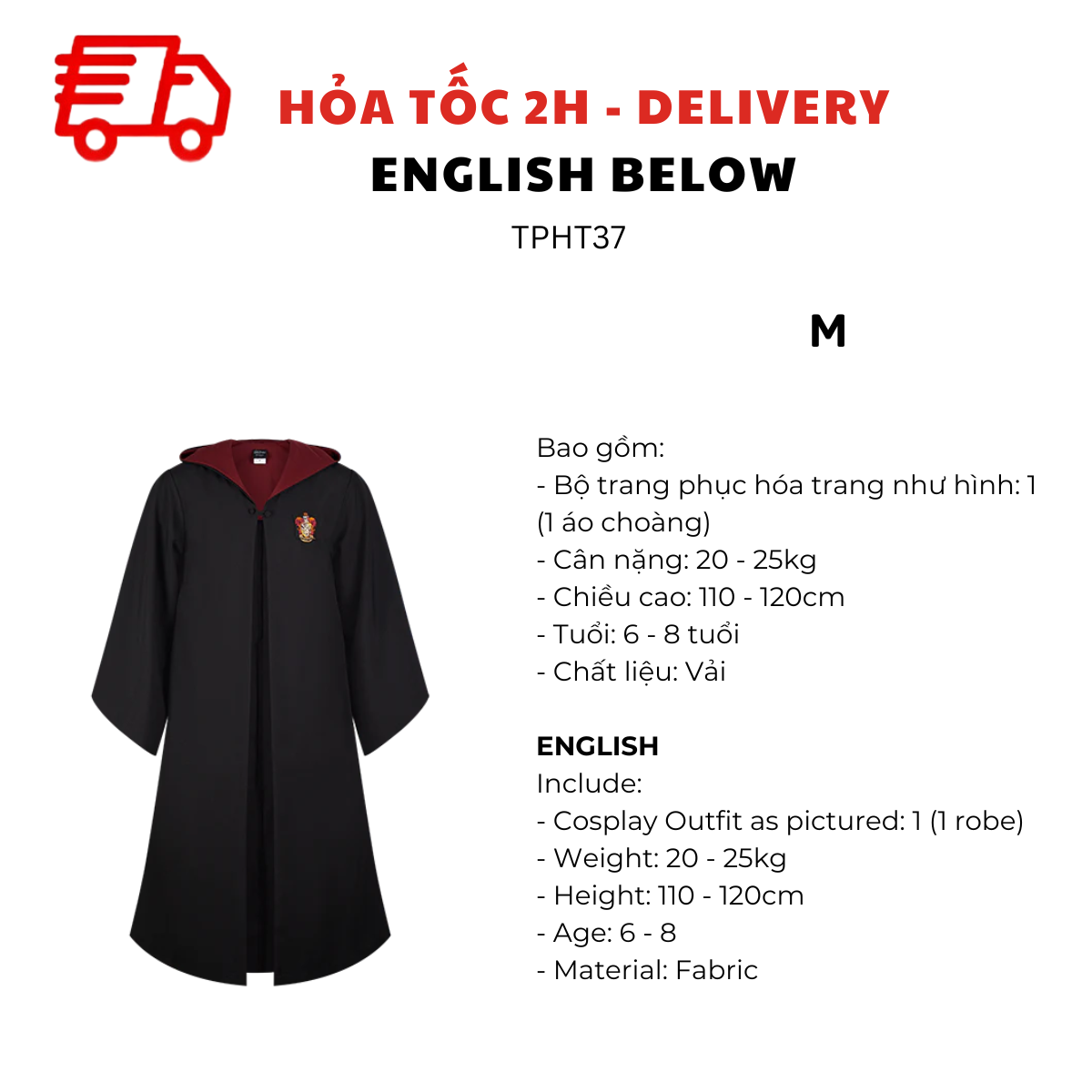 BỘ TRANG PHỤC HÓA TRANG ÁO CHOÀNG GRYFFINDOR HARRY POTTER TPHT37