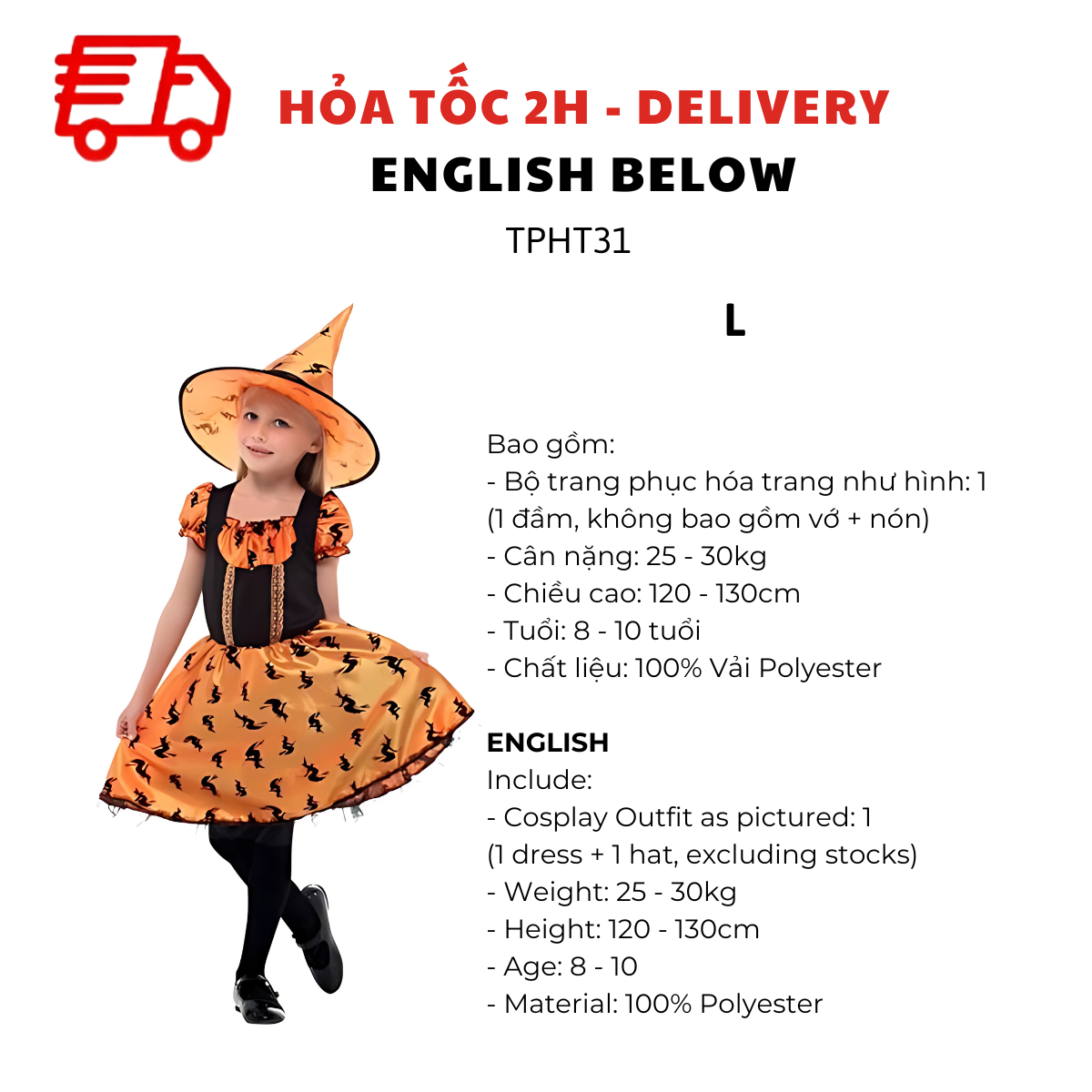 BỘ TRANG PHỤC HÓA TRANG CÔNG CHÚA PHÙ THỦY MÀU ĐEN CAM TPHT31