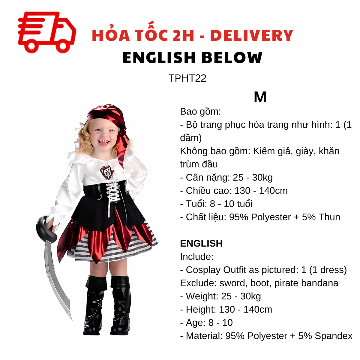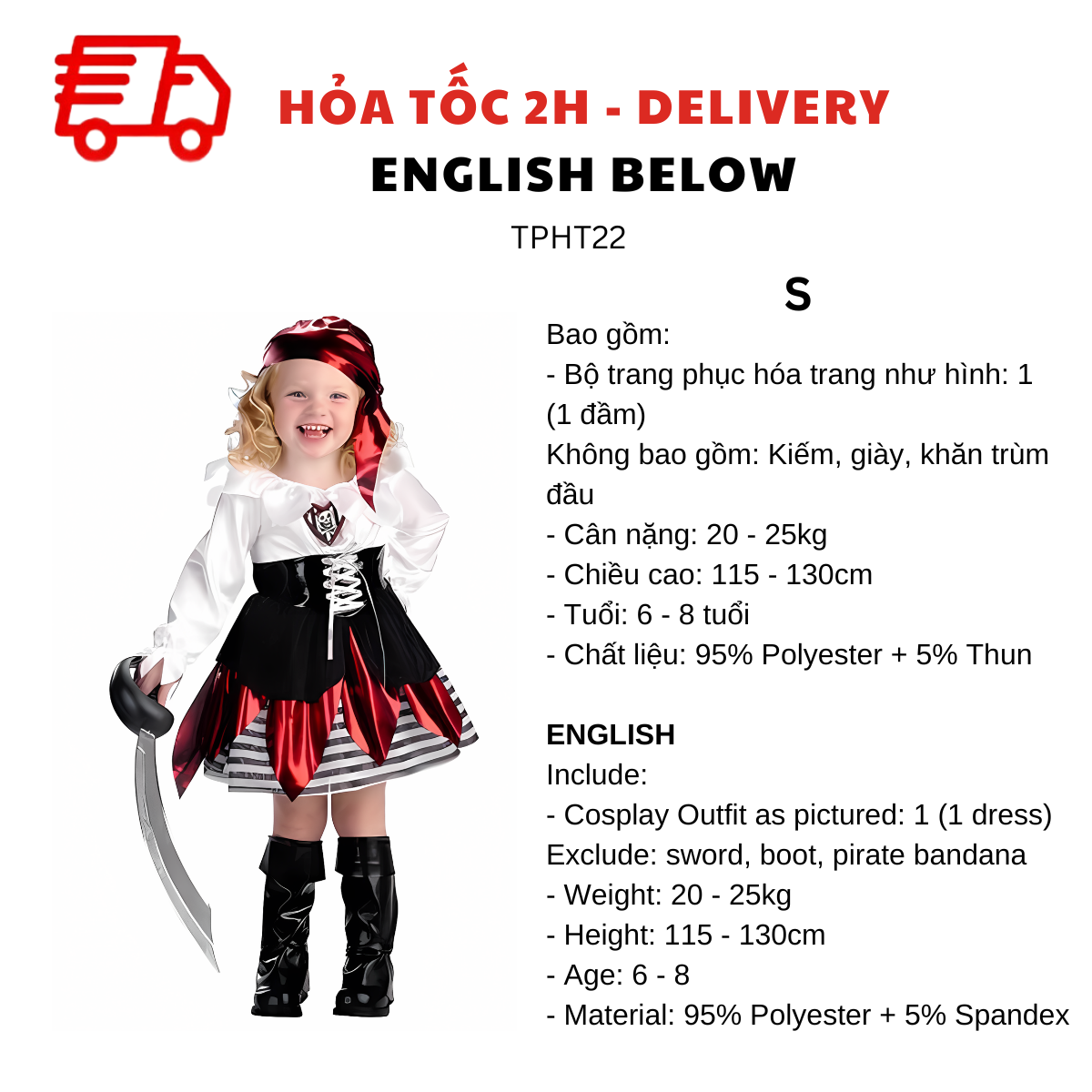 BỘ TRANG PHỤC HÓA TRANG CƯỚP BIỂN CHO BÉ GÁI TPHT22