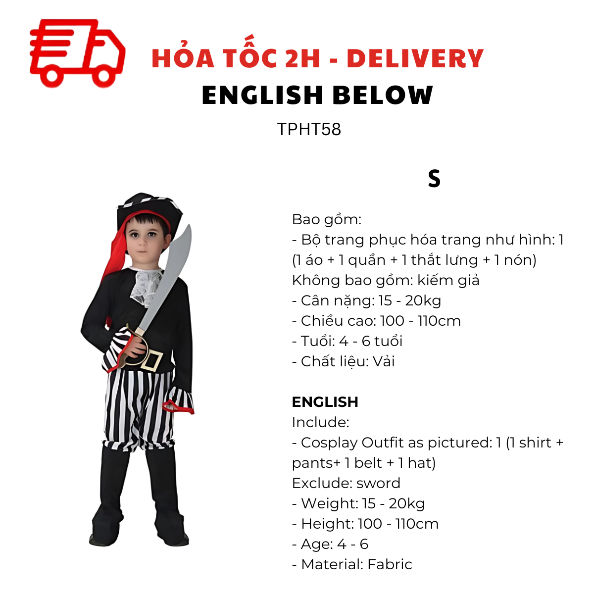 BỘ TRANG PHỤC HÓA TRANG CƯỚP BIỂN SỌC TRẮNG ĐEN CHO BÉ TPHT58