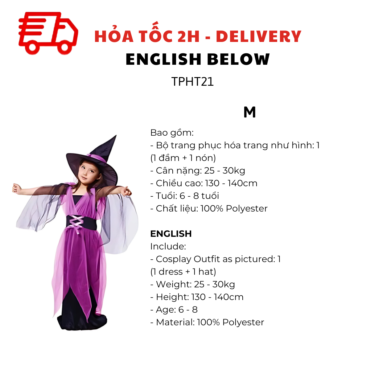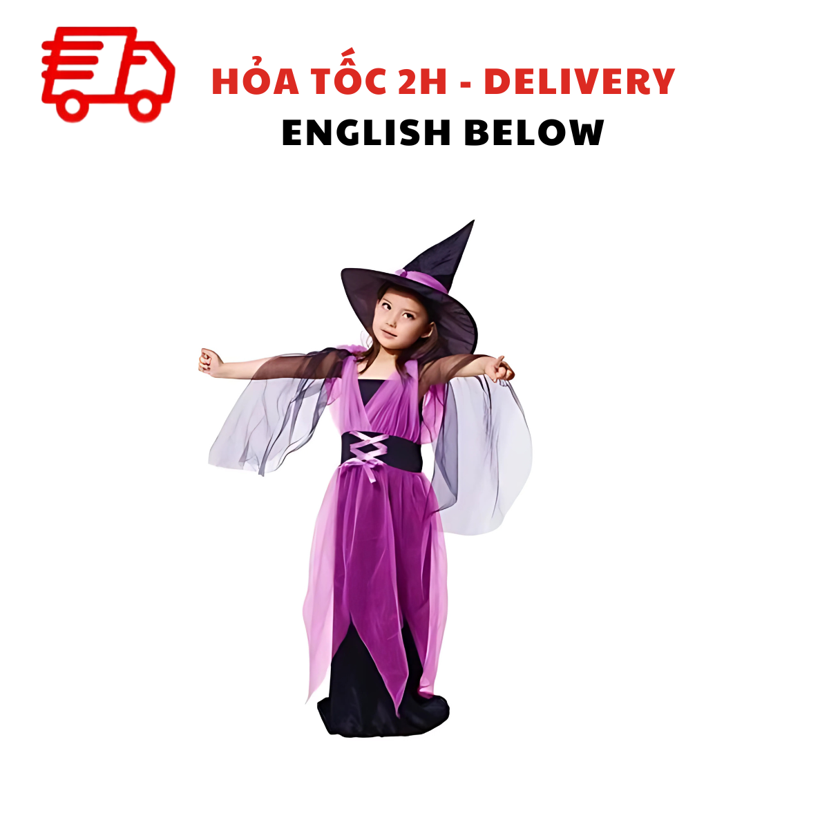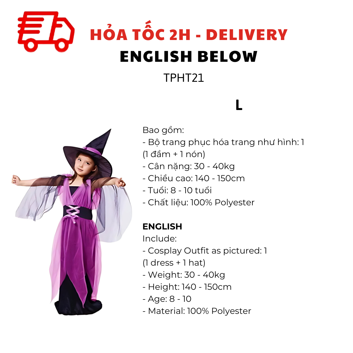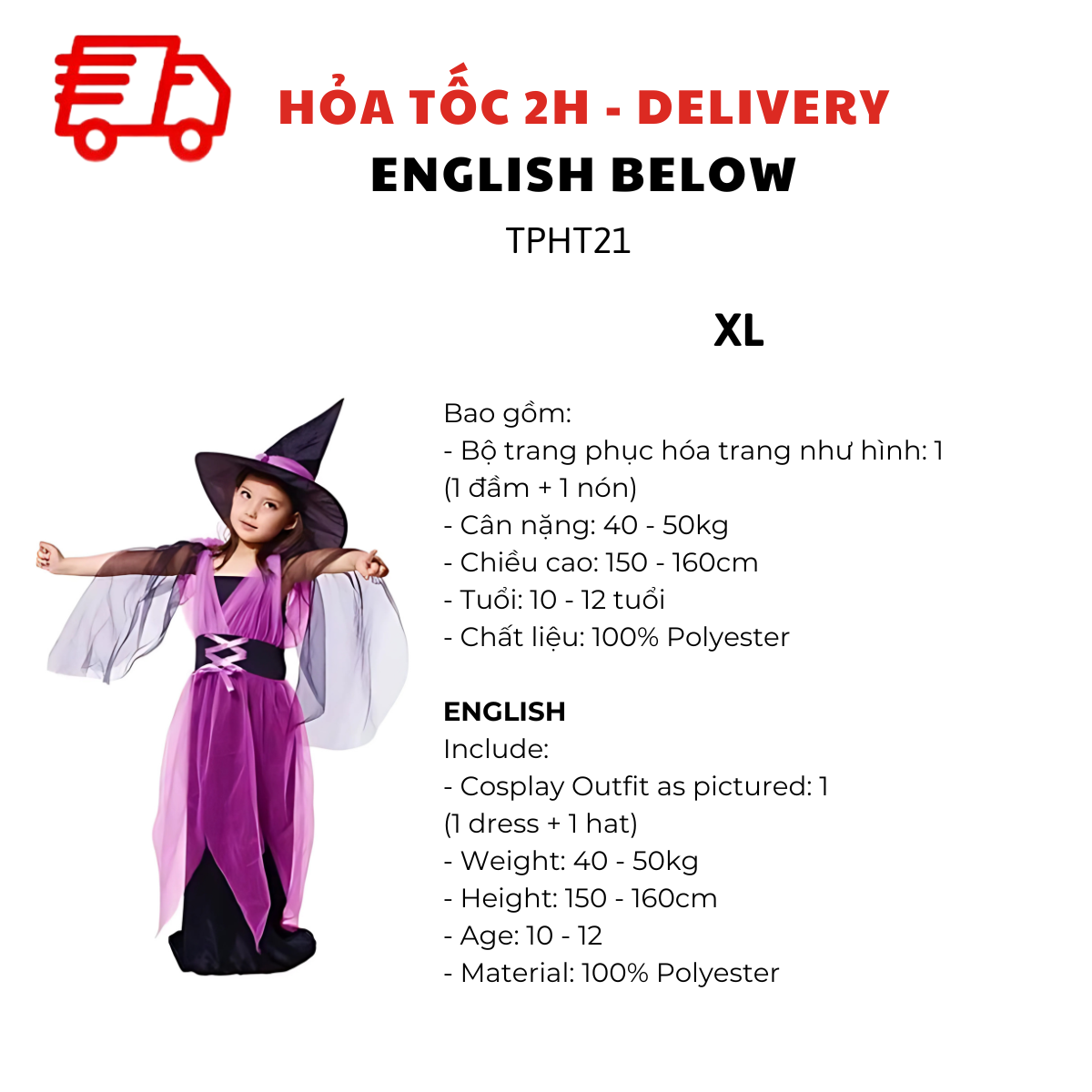 BỘ TRANG PHỤC HÓA TRANG ĐẦM PHÙ THỦY MÀU TÍM CHO BÉ GÁI TPHT21