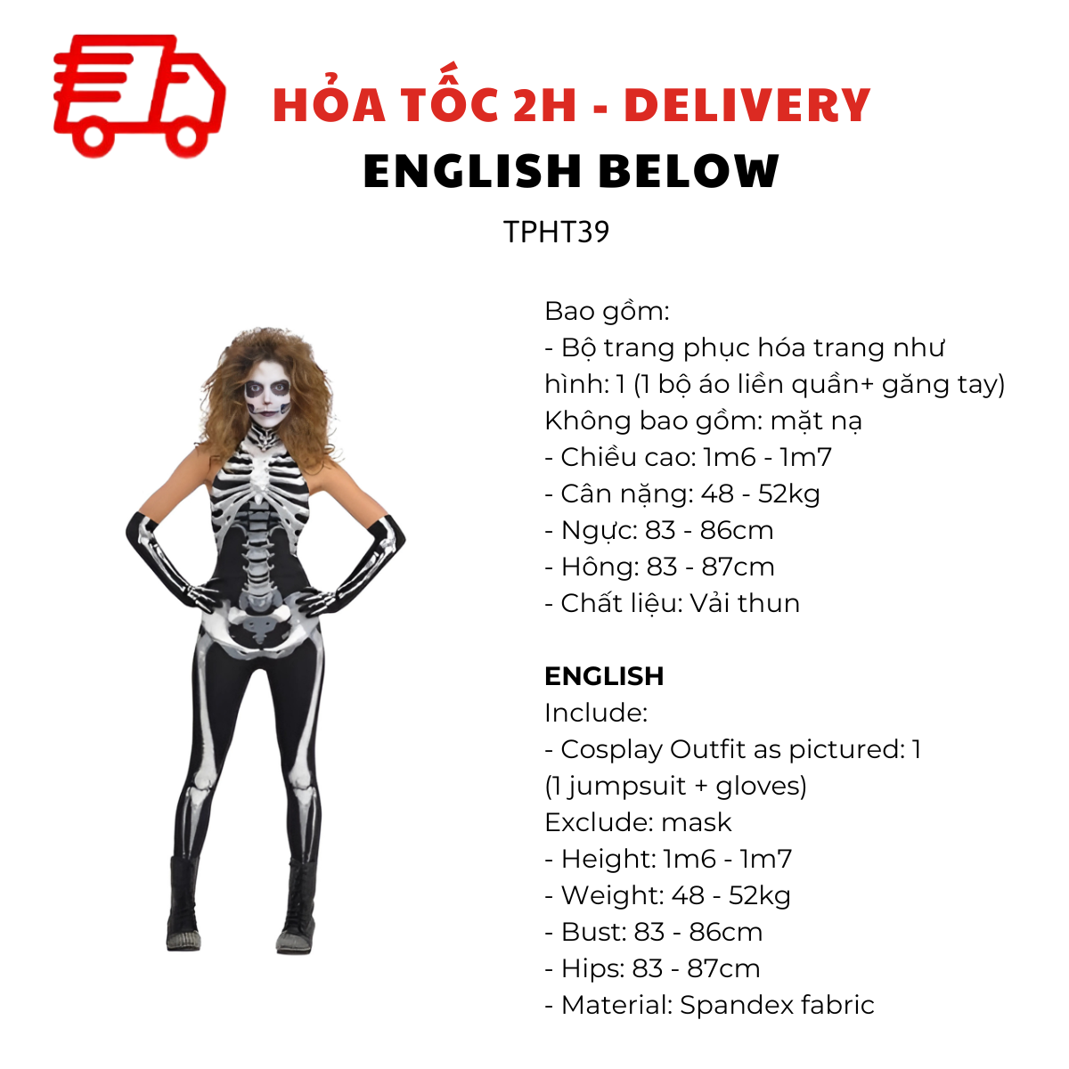 BỘ ĐỒNG PHỤC HÓA TRANG IN HÌNH XƯƠNG CHO NỮ TRƯỞNG THÀNH TPHT39