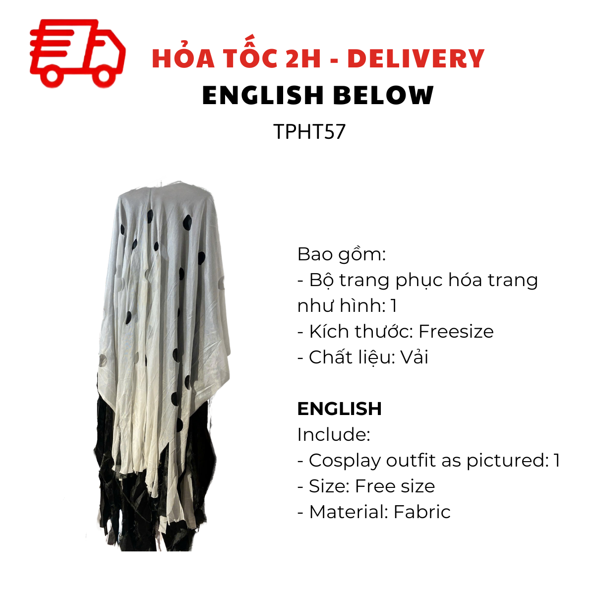BỘ TRANG PHỤC HÓA TRANG MA TRẮNG ĐEN CHẤM BI TPHT57