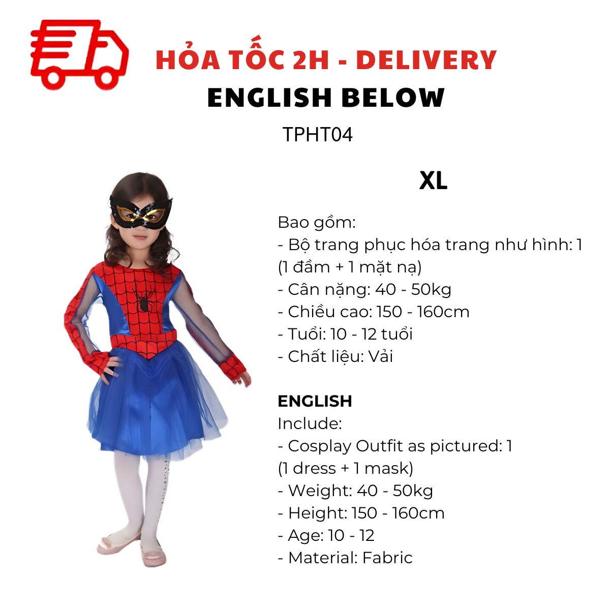 BỘ TRANG PHỤC HÓA TRANG NGƯỜI NHỆN CHO BÉ GÁI TPHT04