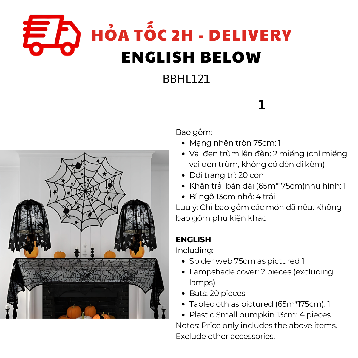 BỘ TRANG TRÍ HALLOWEEN TRONG NHÀ MẠNG NHỆN, DƠI, BÍ NGÔ BBHL121