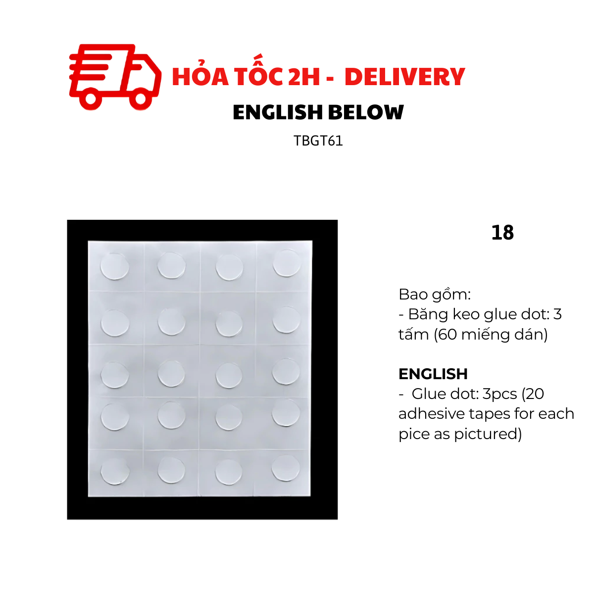 - Glue dot: 3pcs (20 adhesive tapes for each pice as pictured)