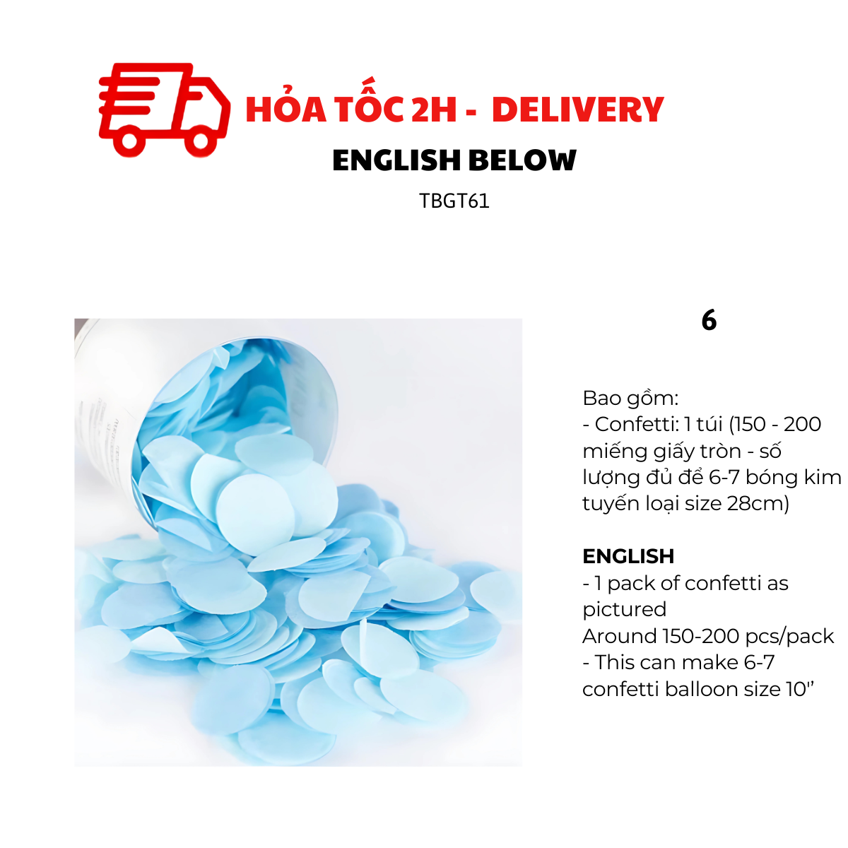 - Confetti: 1 túi (150 - 200 miếng giấy tròn - số lượng đủ để 6-7 bóng kim tuyến loại size 28cm)