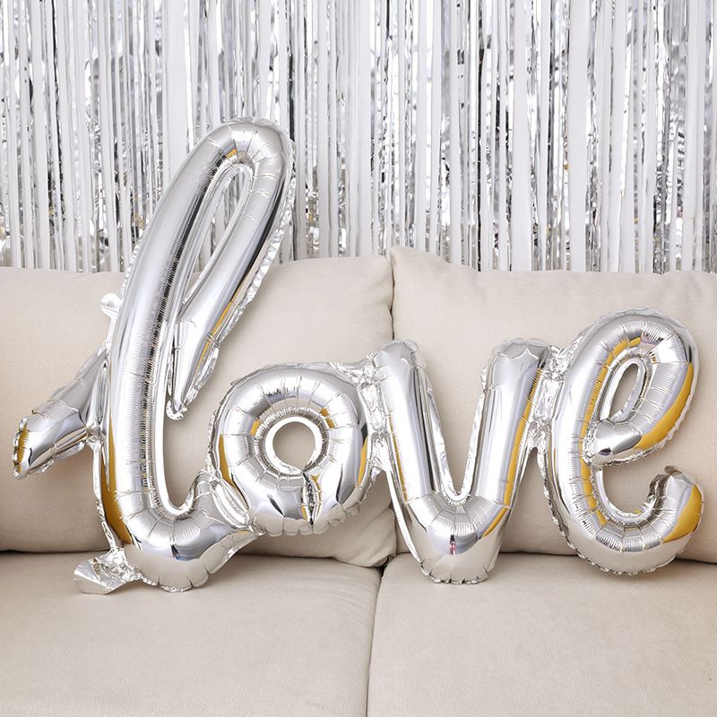 1. Bong bóng hình chữ love in nghiêng size nhỏ BẠC 40cm: 1