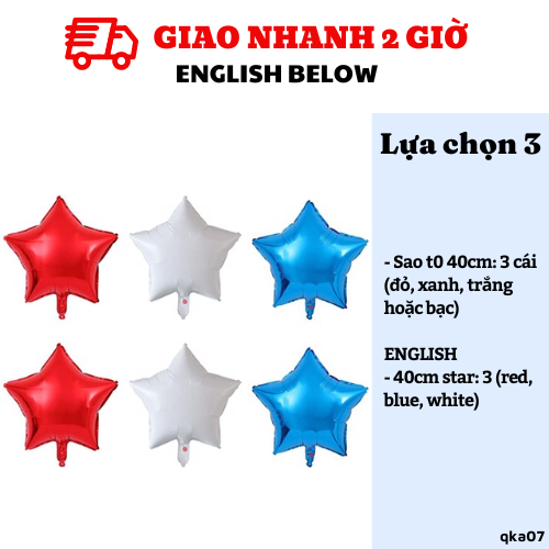 - Sao 40cm: 3 cái (đỏ, xanh, trắng hoặc bạc)