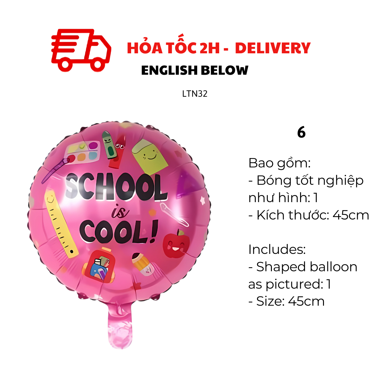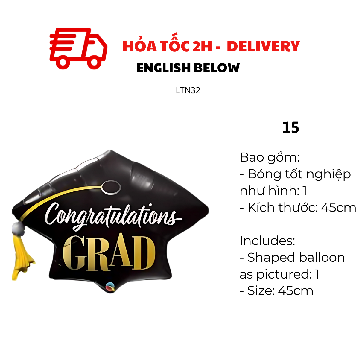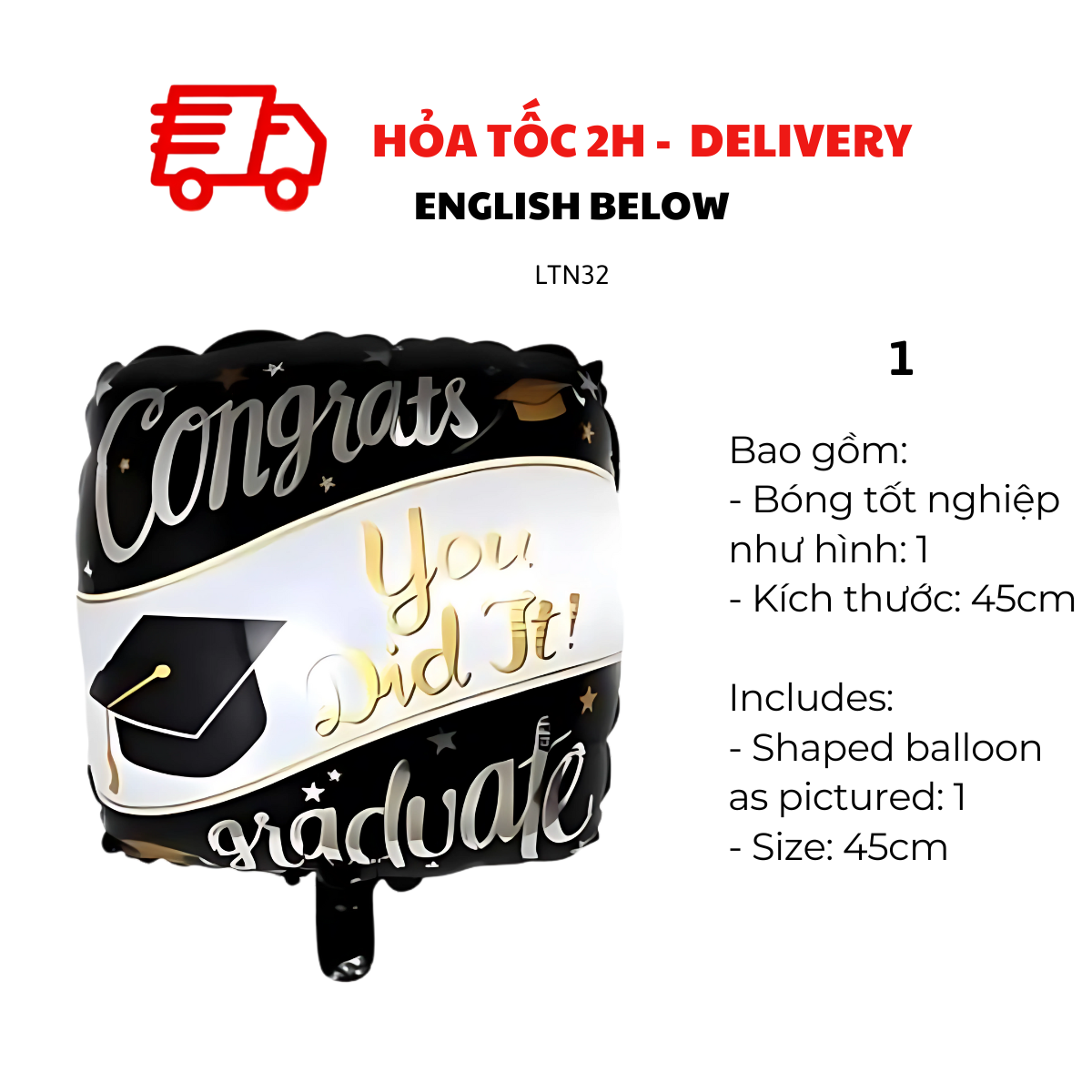 Với màu sắc nổi bật như vàng, đen, trắng và bạc, cùng thiết kế sinh động, bộ bóng này sẽ mang đến không khí trang trọng nhưng vẫn đầy vui tươi cho buổi lễ. Dễ dàng bơm hơi và sắp xếp theo chủ đề riêng, bạn có thể sử dụng để trang trí sân khấu, khu vực chụp ảnh, bàn tiệc hoặc lớp học.