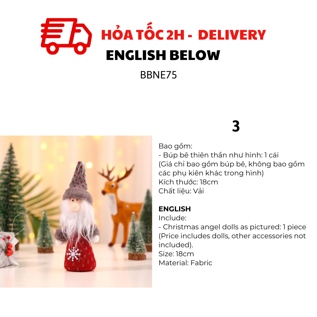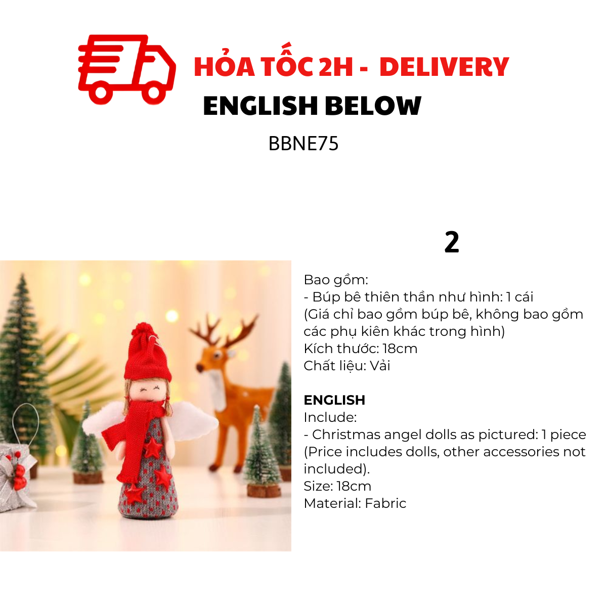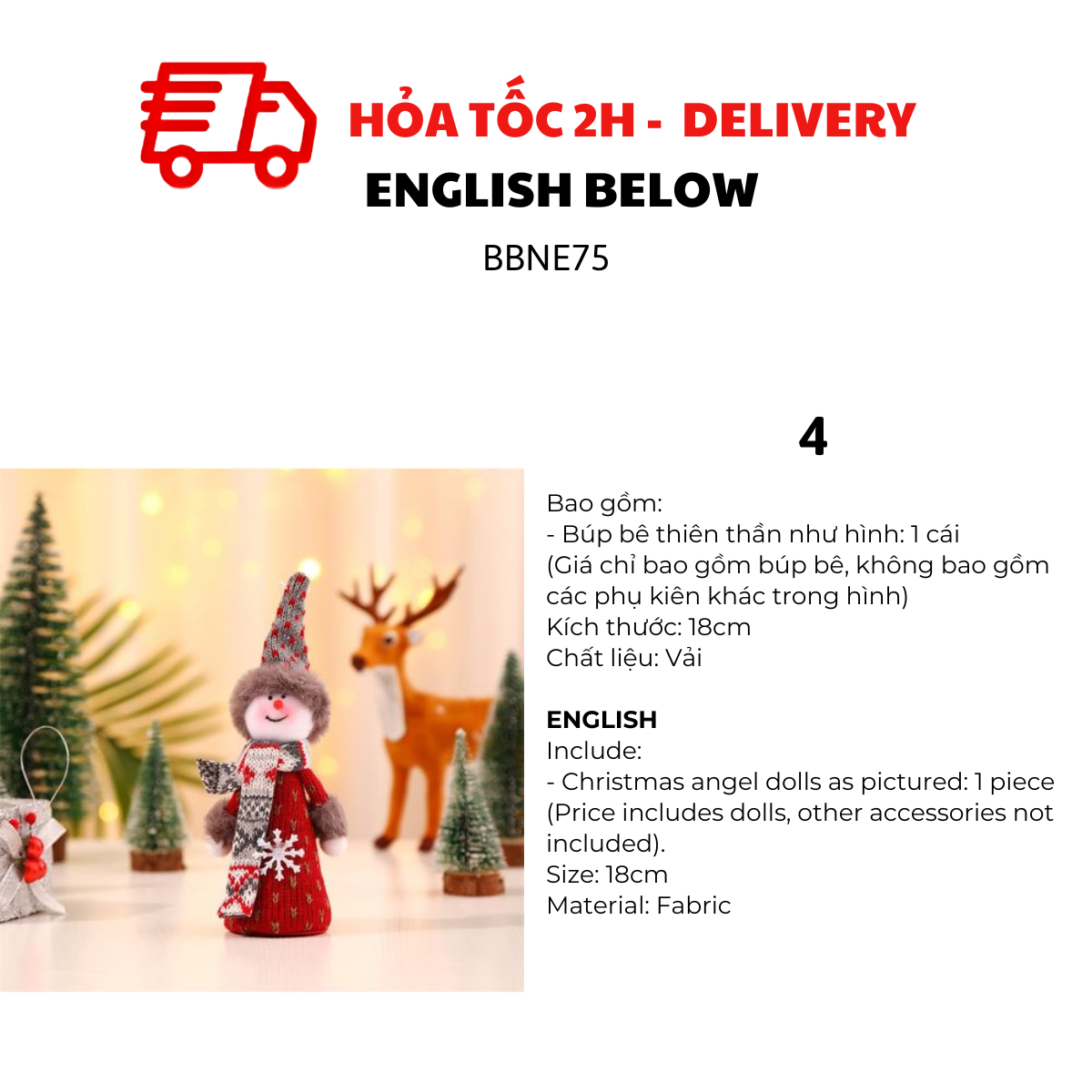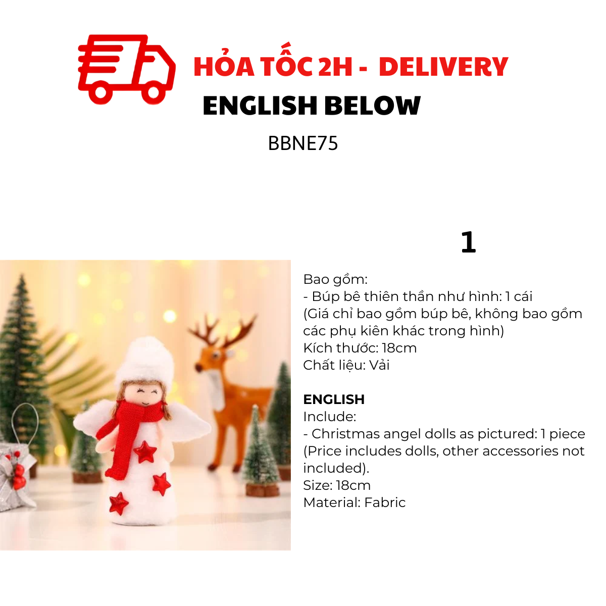 BÚP BÊ THIÊN THẦN TRANG TRÍ GIÁNG SINH BBNE75