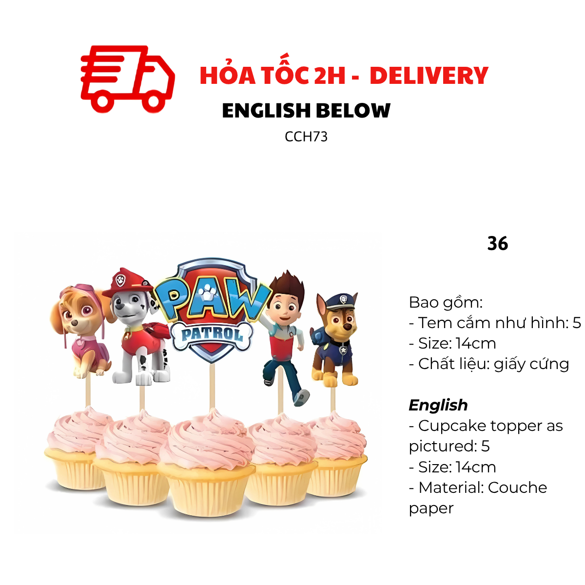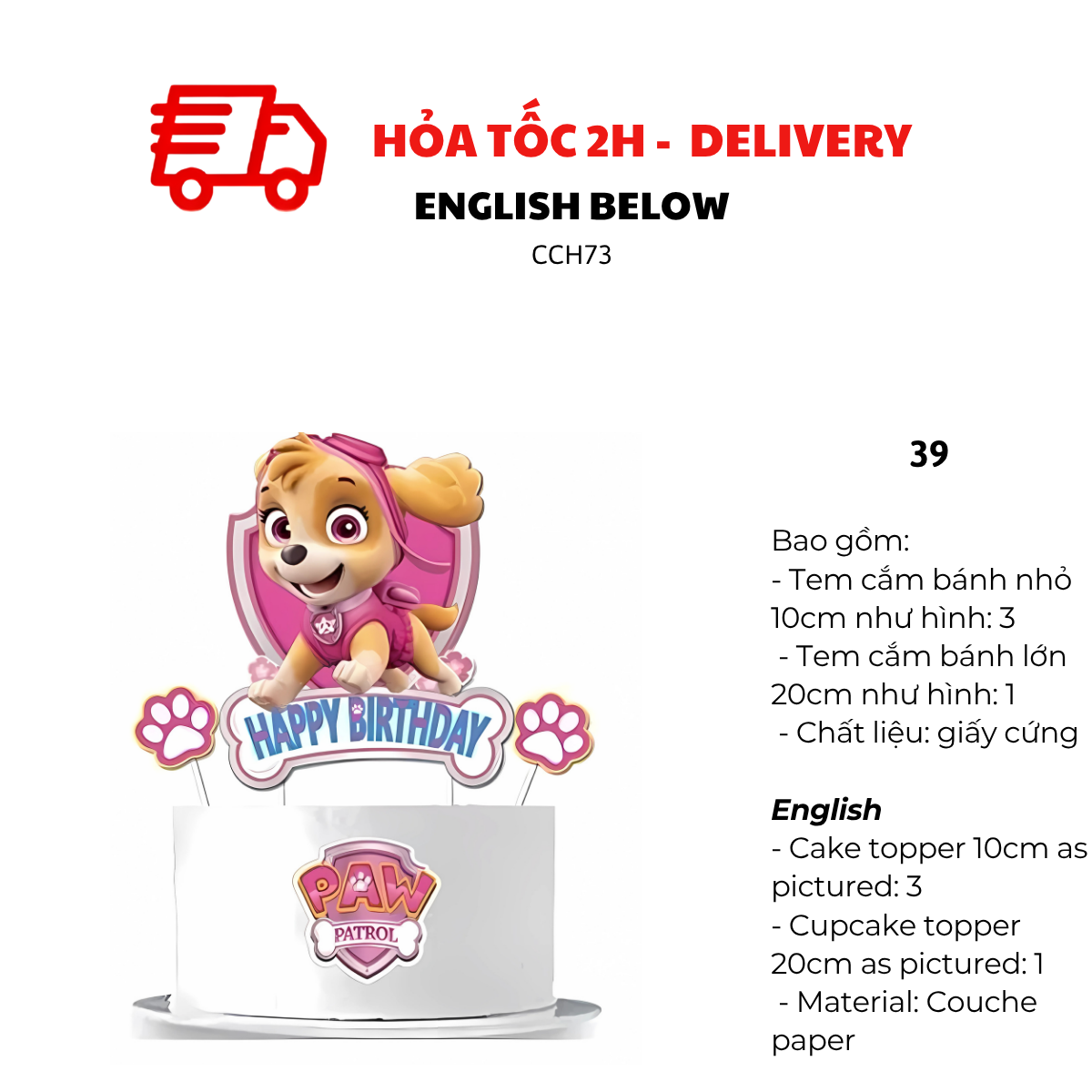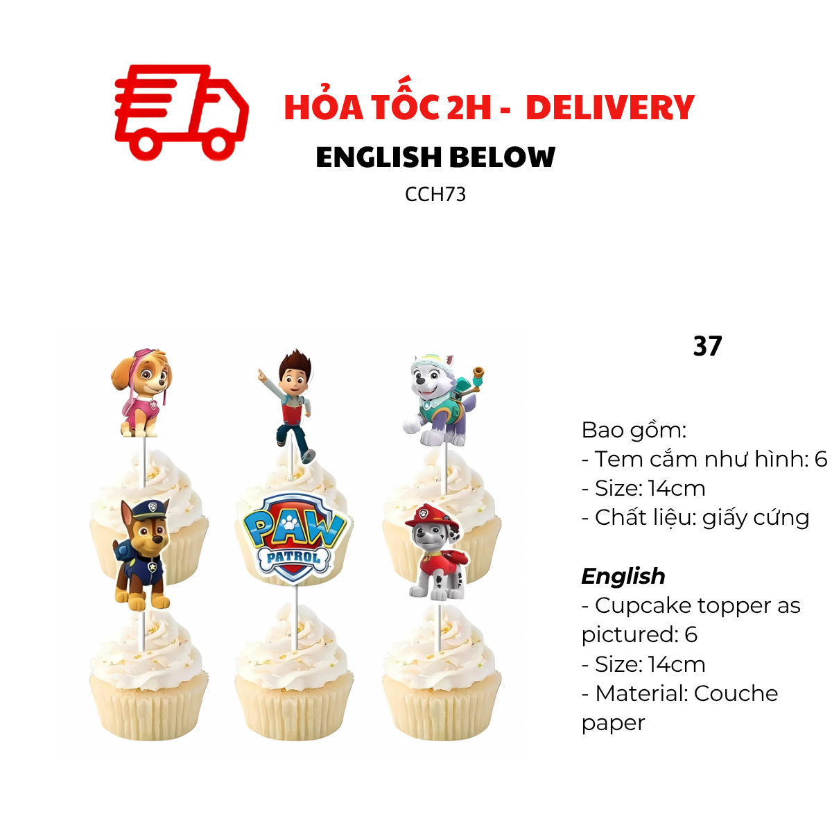 - Cupcake topper 20cm as pictured: 1