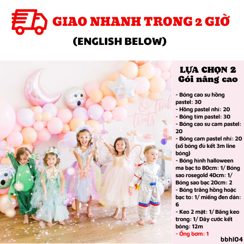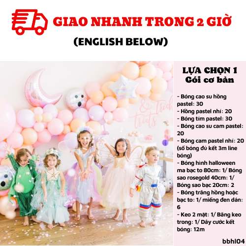 - Bóng hình halloween ma bạc to 80cm: 1/ Bóng sao rosegold 40cm: 1/ Bóng sao bạc 20cm: 2