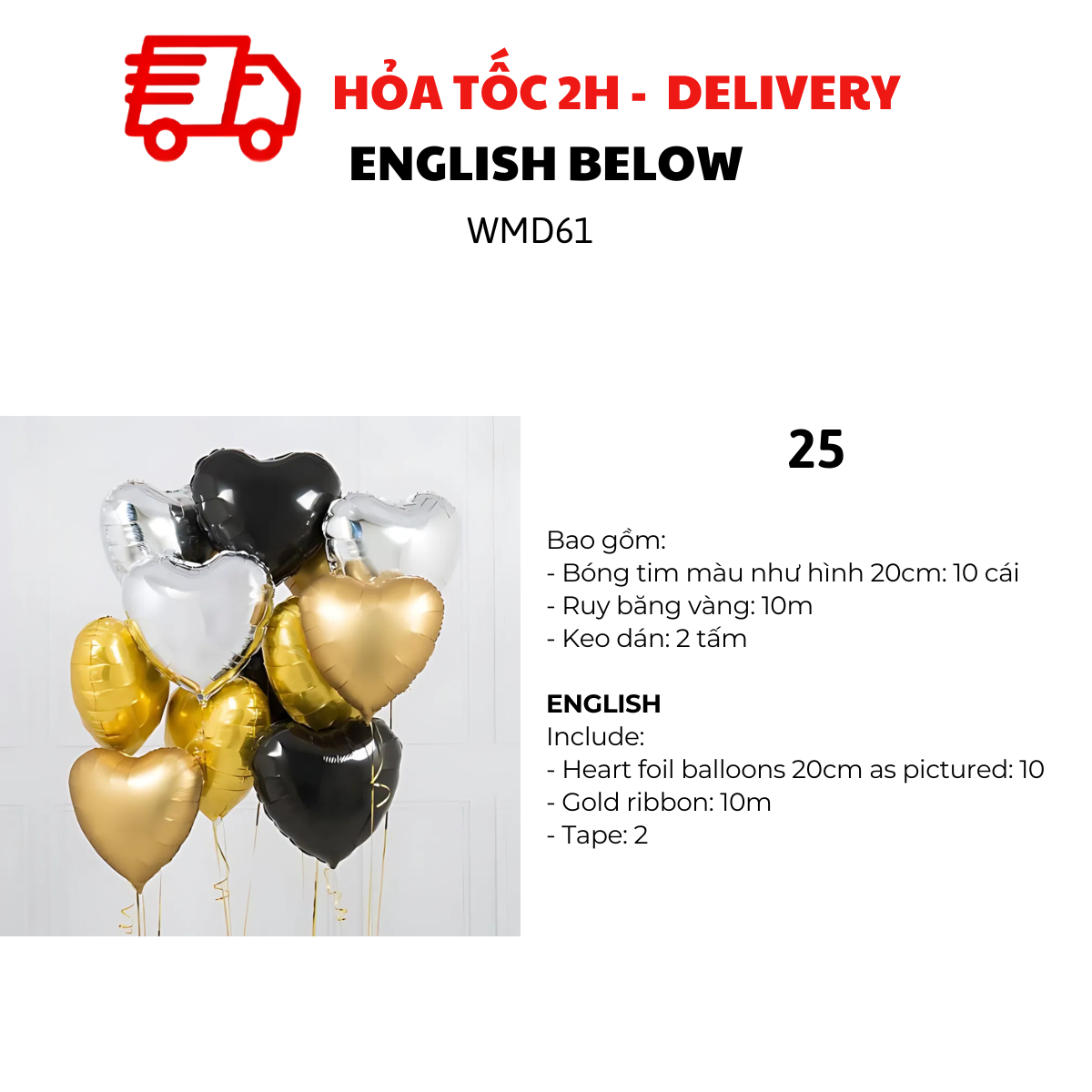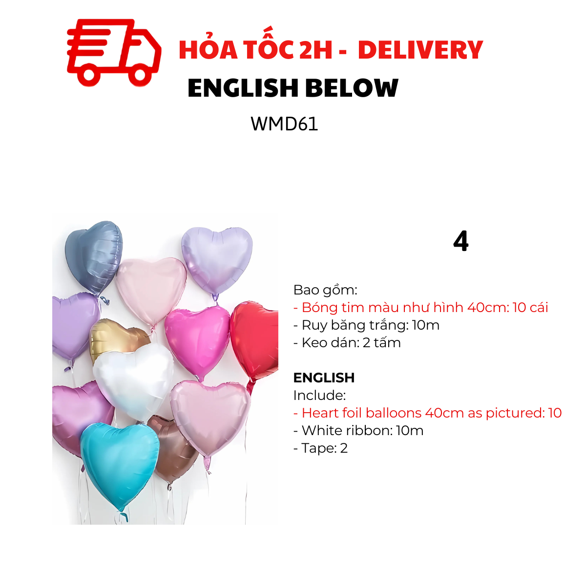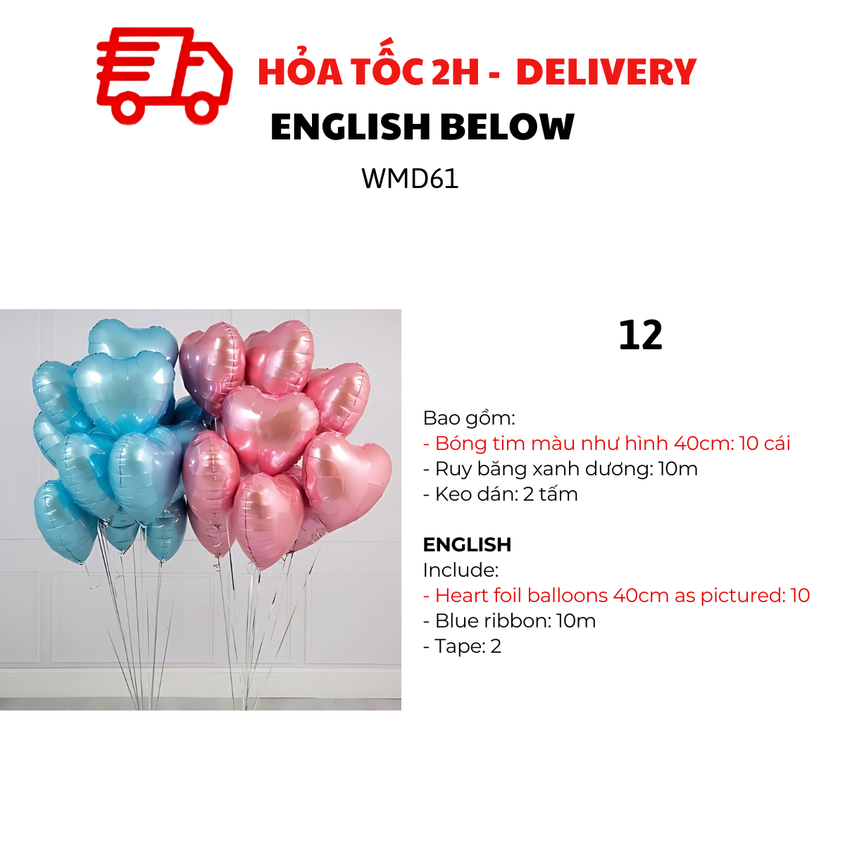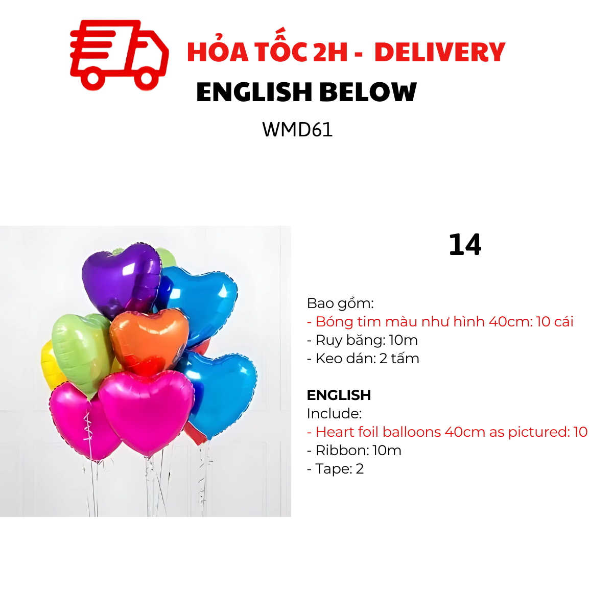 MẪU 2, 4, 6, 8, 10, 12, 14, 16, 18, 20, 22, 24, 26, 28: BỘ BÓNG TIM 40CM