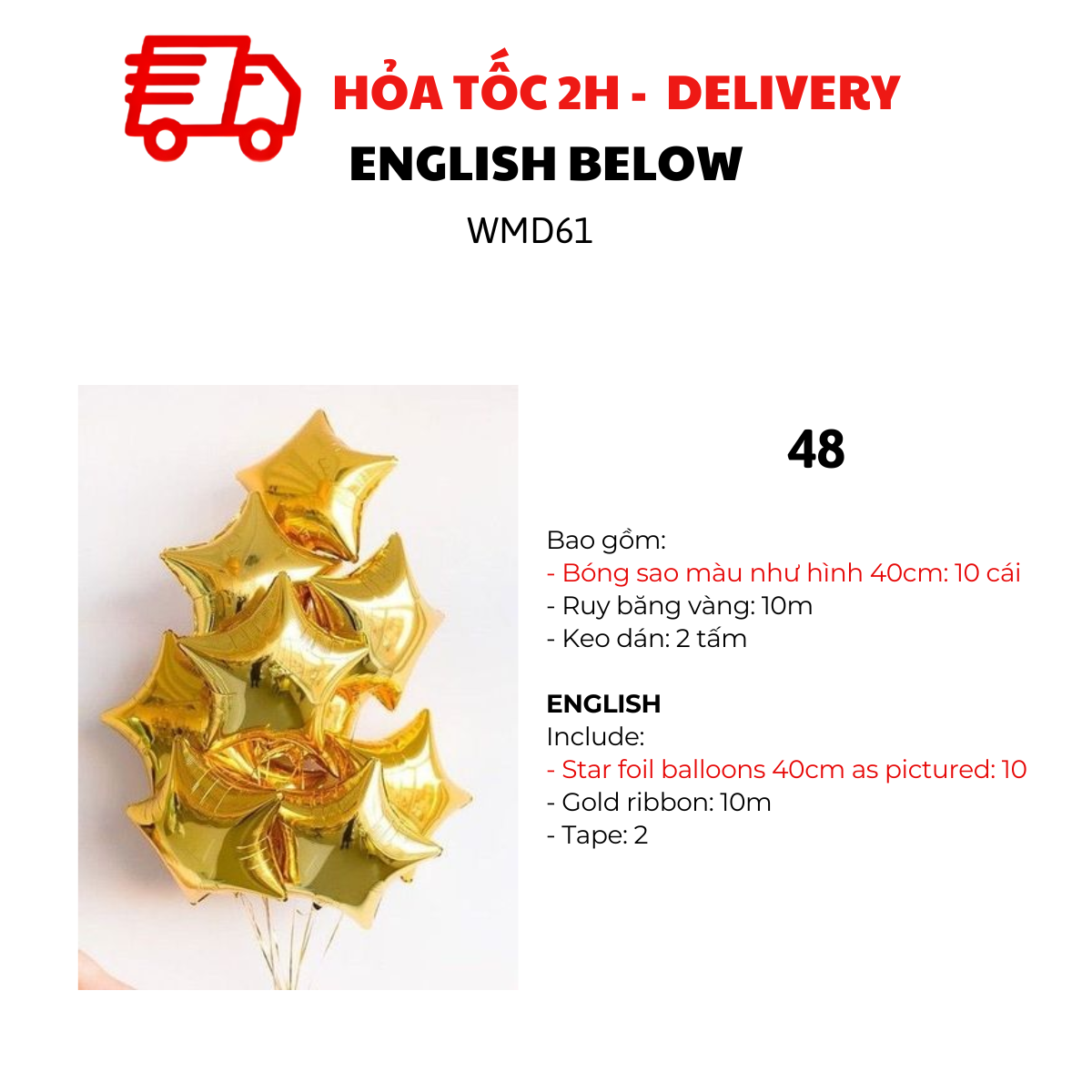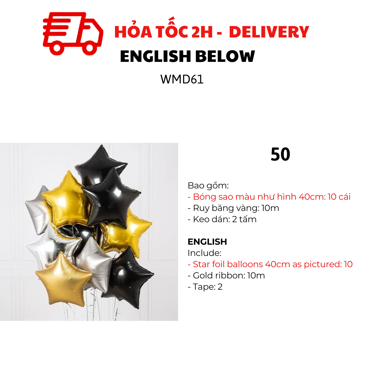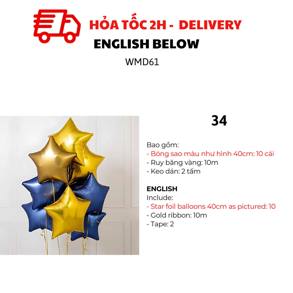 MẪU 32, 34, 36, 38, 40, 42, 44, 46, 48, 50: BỘ BÓNG SAO 40CM