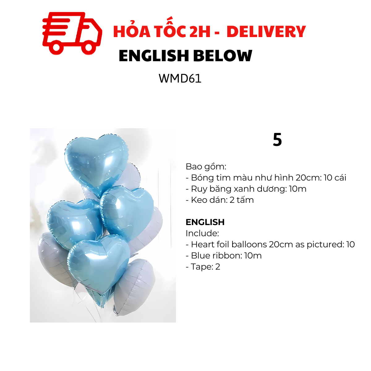 MẪU 1, 3, 5, 7, 9, 11, 13, 15, 17, 19, 21, 23, 25, 27: BỘ BÓNG TIM 20CM