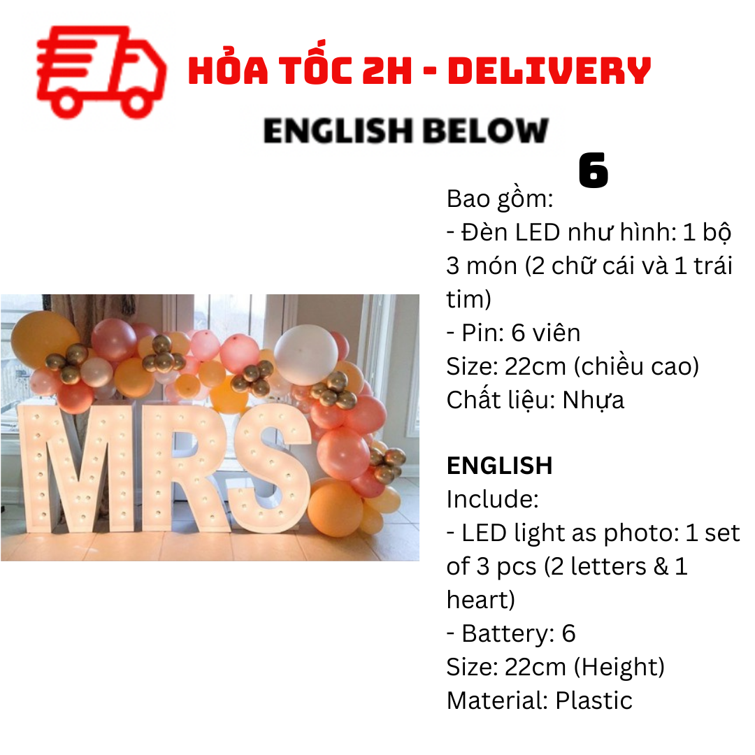 - Đèn LED như hình: 1 bộ 6 chữ