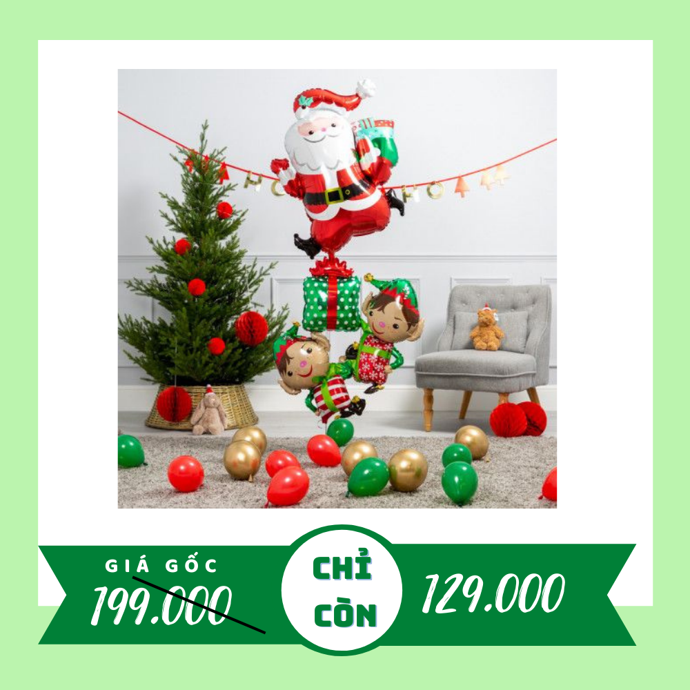 Combo 1 có giá: 199kNay chỉ còn: 129kBao gồm:1) Bóng hình noel nhỏ: 42) Bóng: 10 (5 xanh, 5 đỏ)3) Dây cờ Noel (Không chữ): 15) Băng keo 2 mặt: 1(Giá combo chỉ bao gồm những phụ kiện đã được đề cập tới ở trên, chưa bao gồm các phụ kiện khác)
