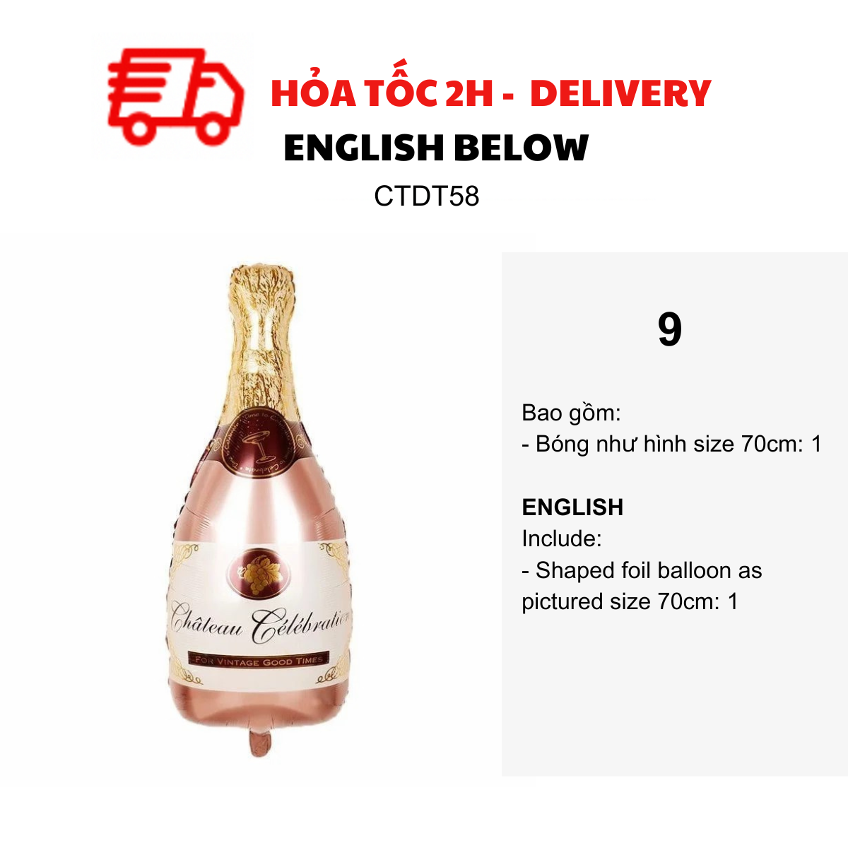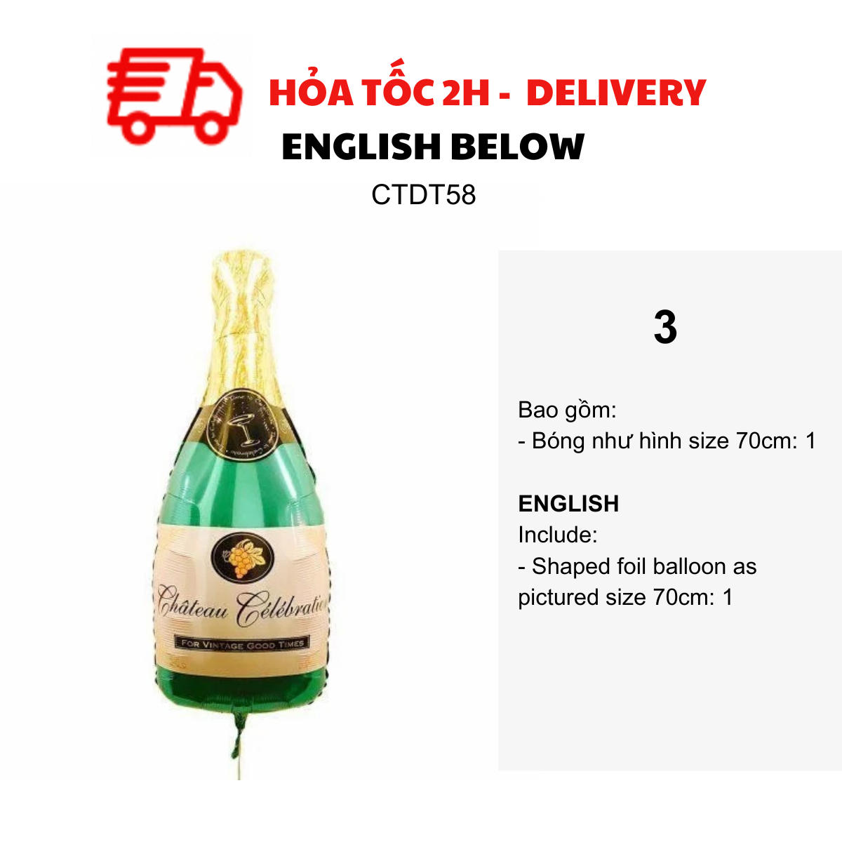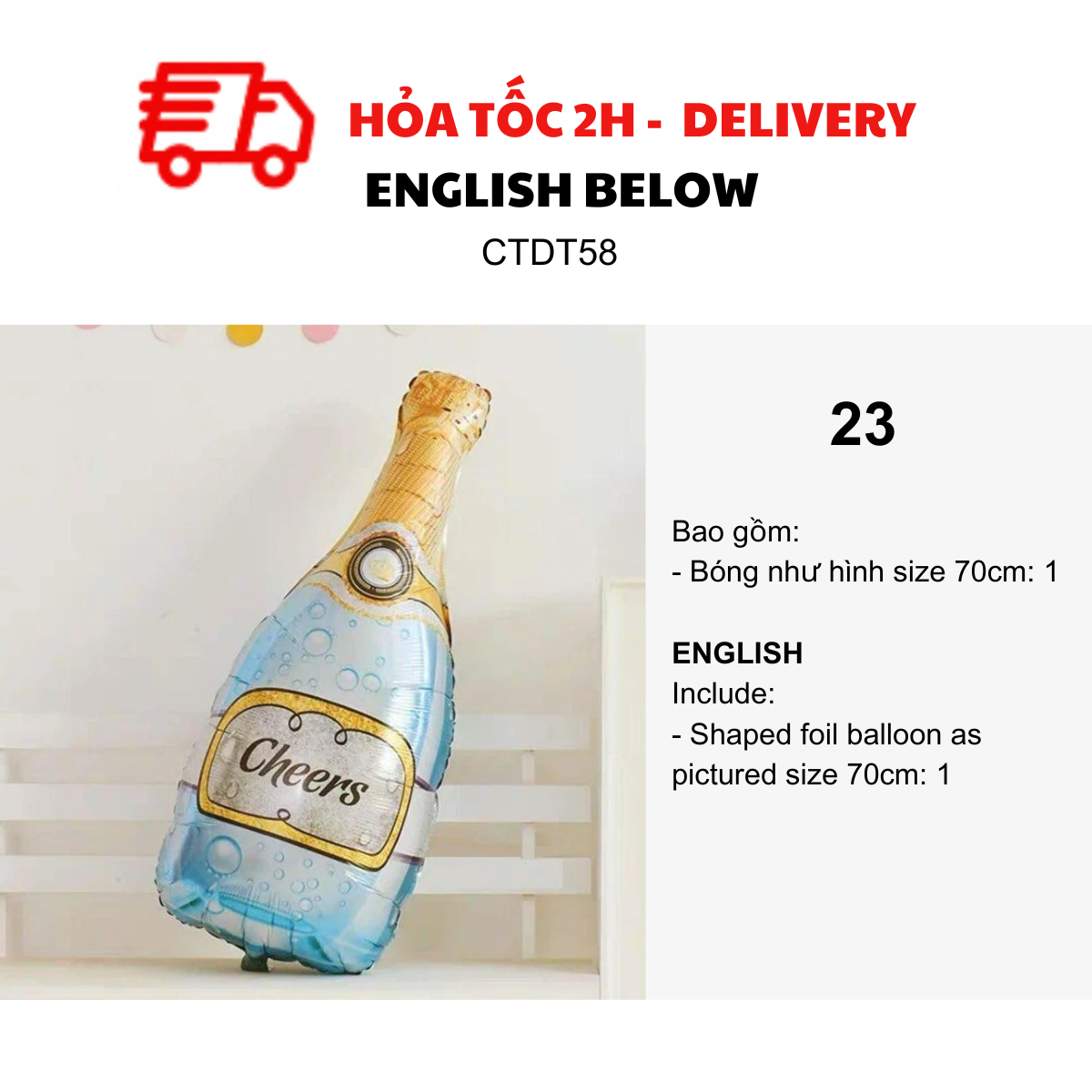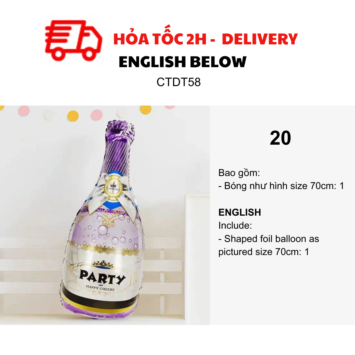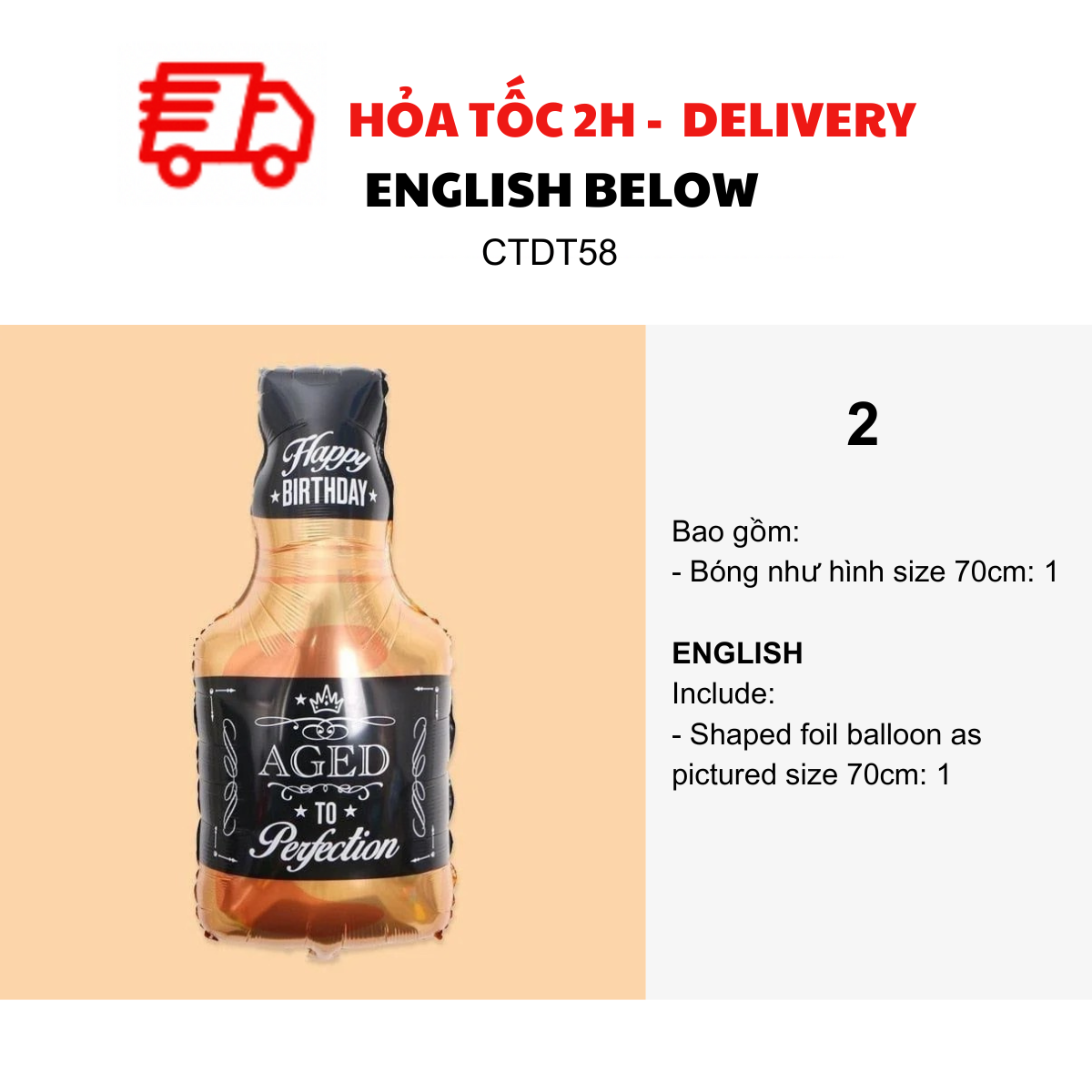 - Bottle foil balloon as pictured size 70-80cm: 2
