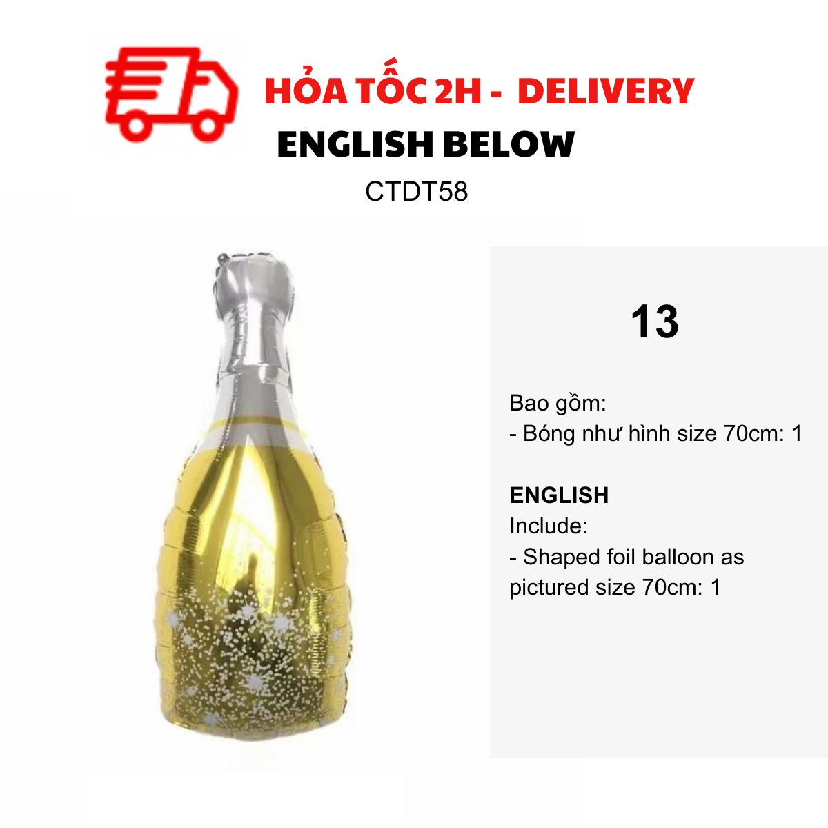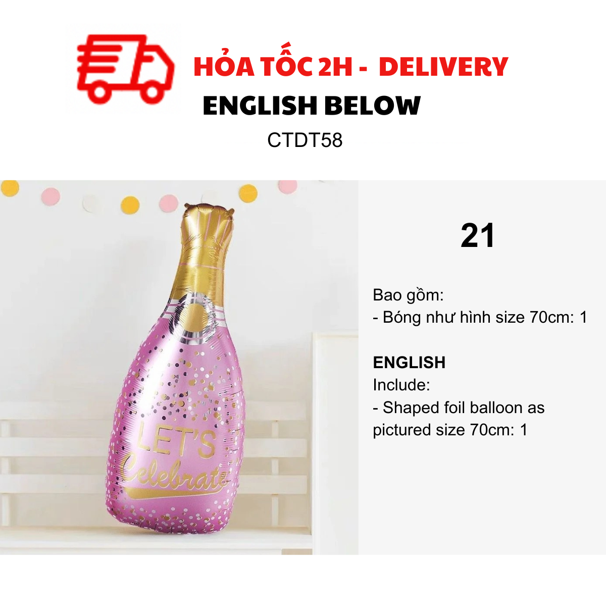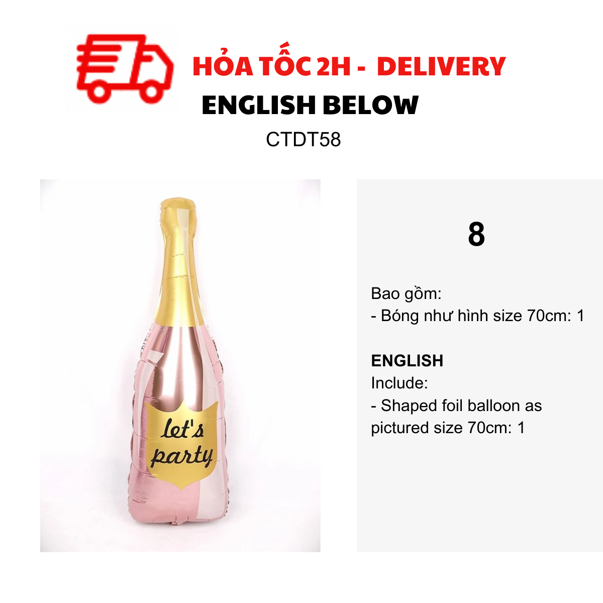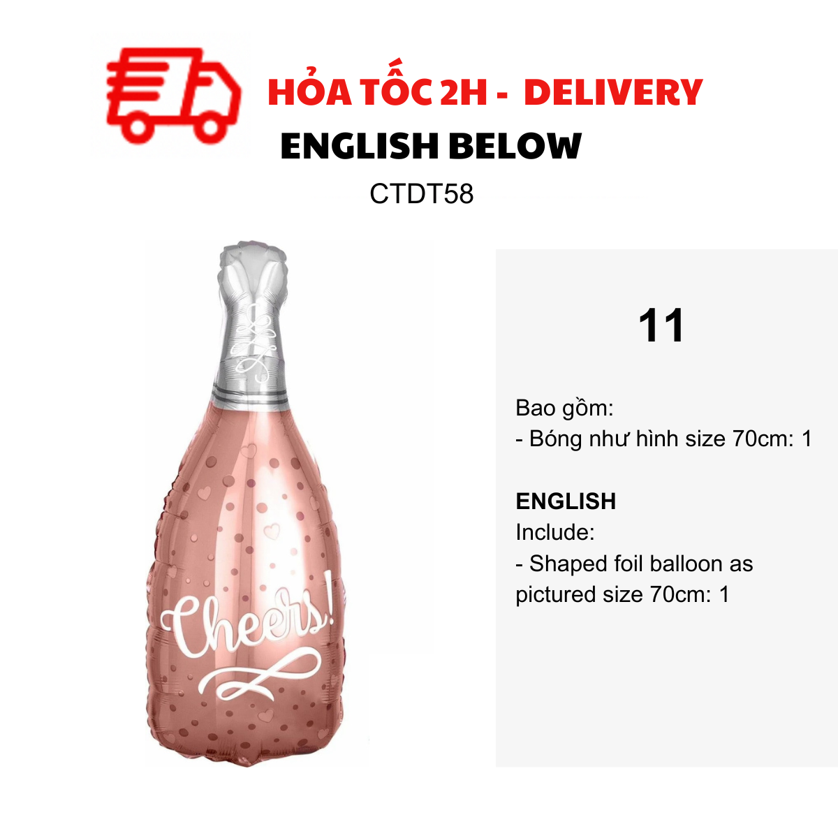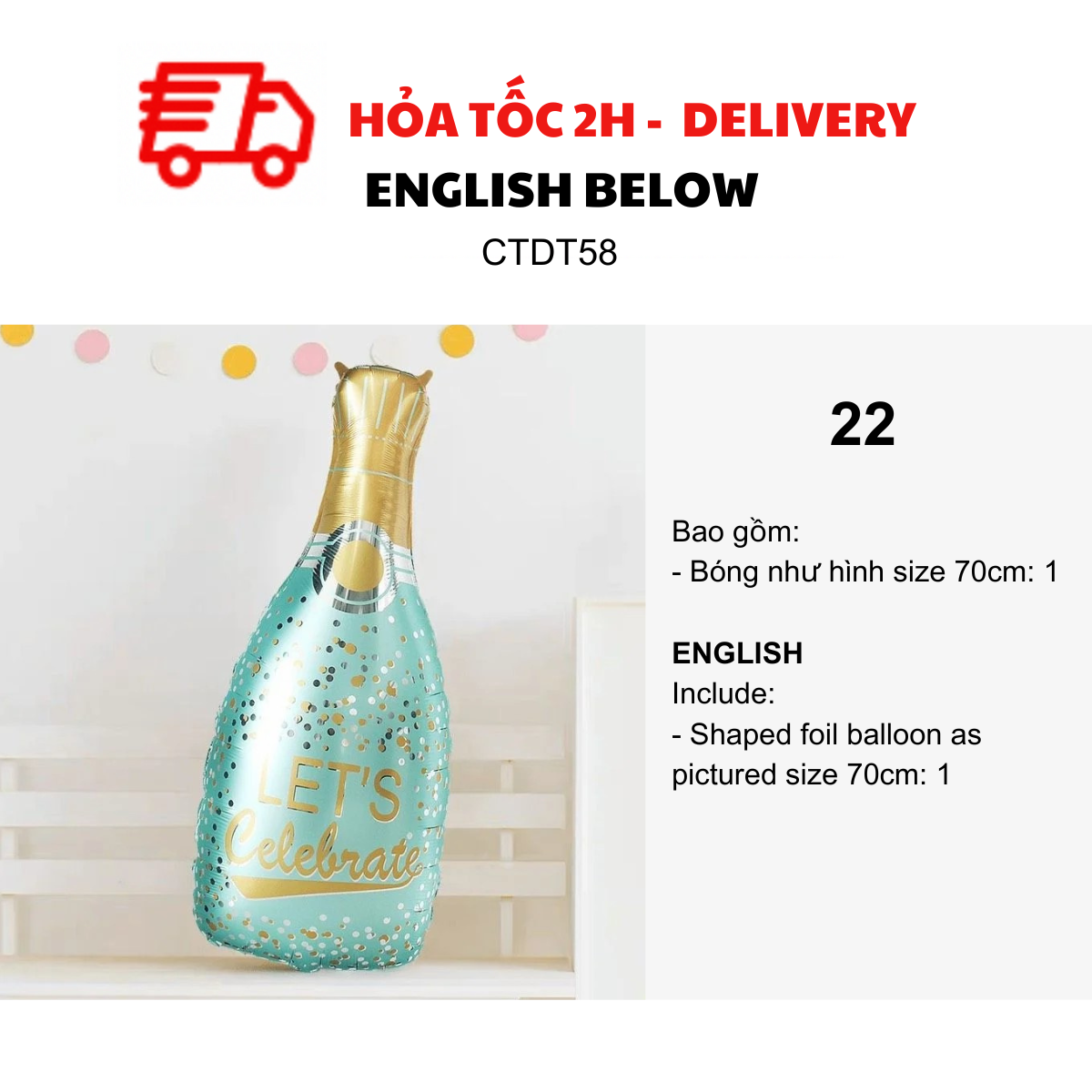 - Bottle foil balloon as pictured size 70-80cm: 2