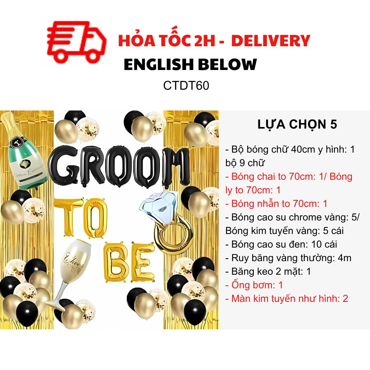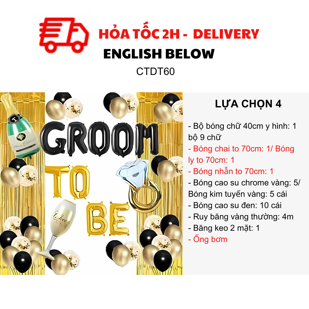 BỘ BÓNG GROOM TO BE VÀNG ĐEN CTDT60