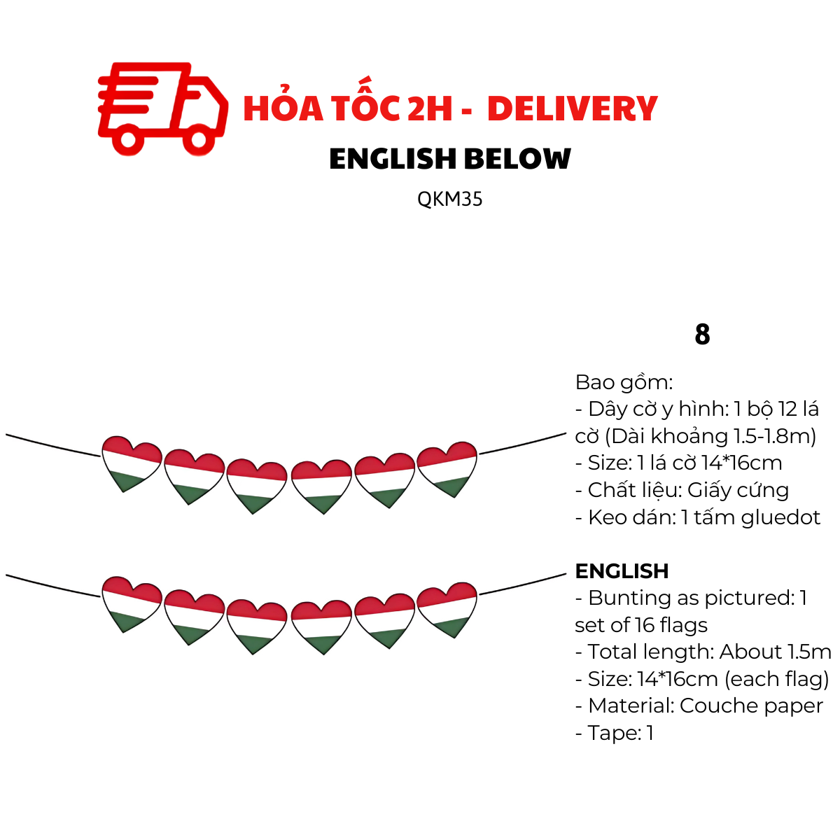 - Dây cờ y hình: 1 bộ 12 lá cờ (Dài khoảng 1.5m)