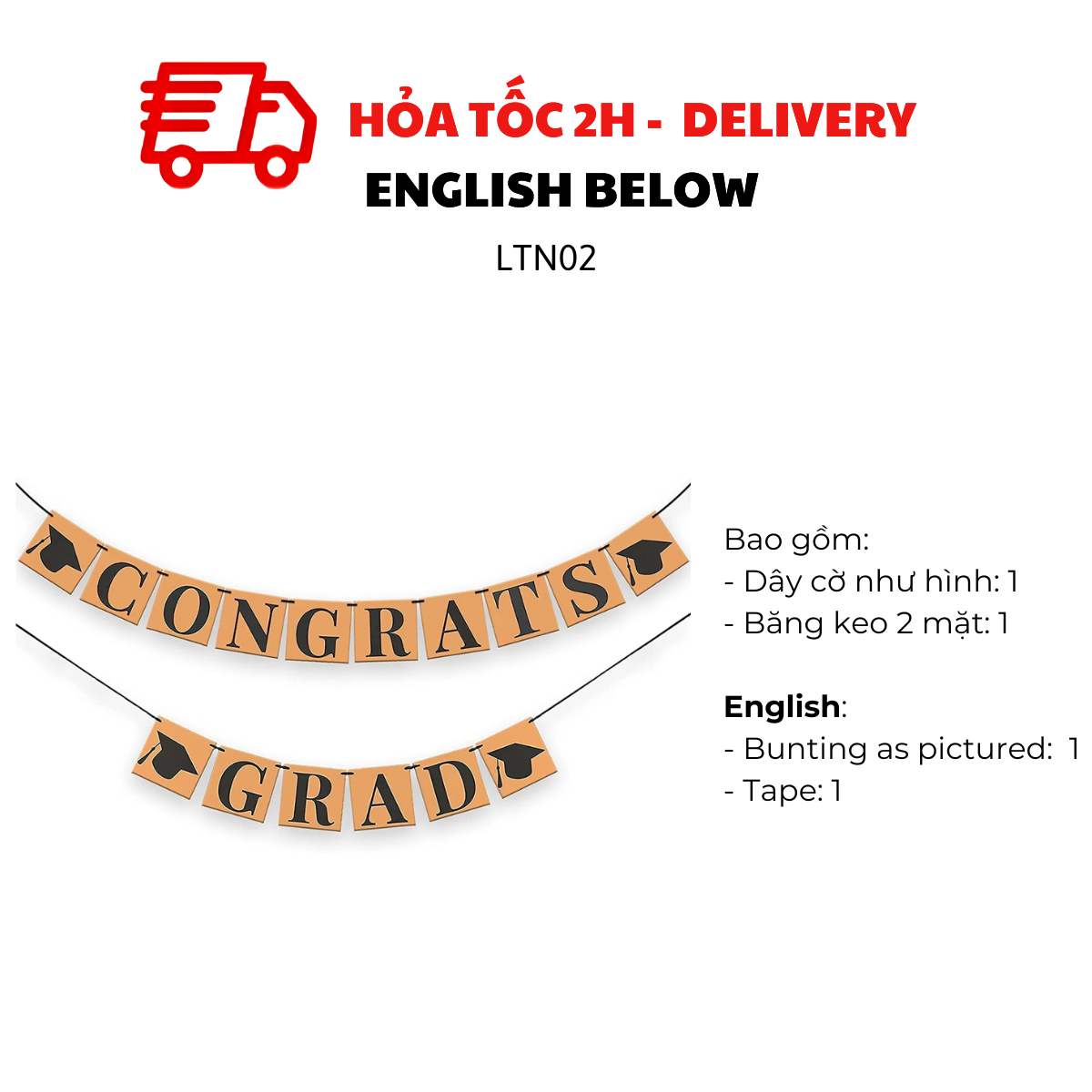 DÂY CỜ CONGRATS GRAD MÀU NÂU ĐEN TRANG TRÍ LỄ TỐT NGHIỆP LTN02