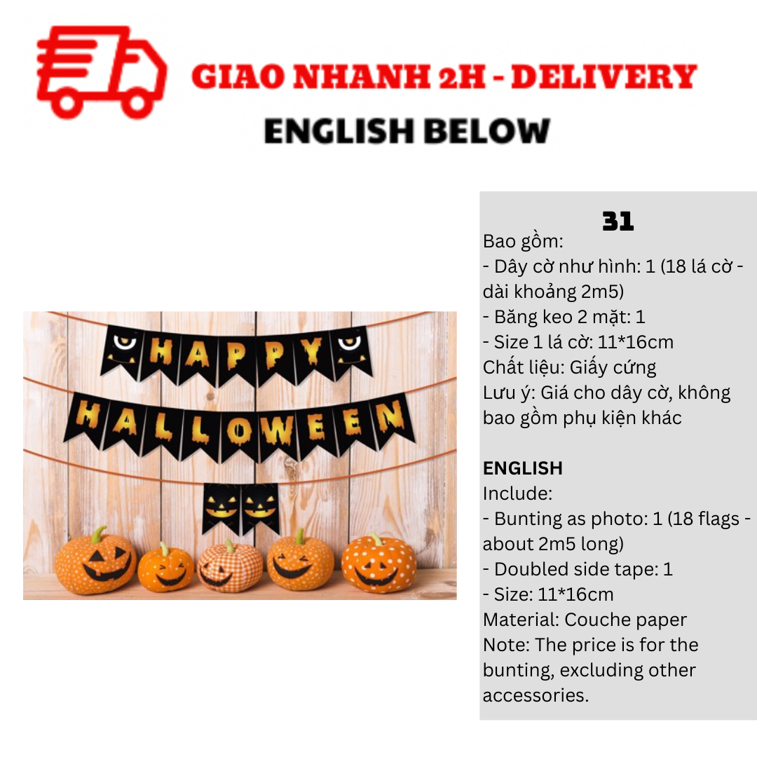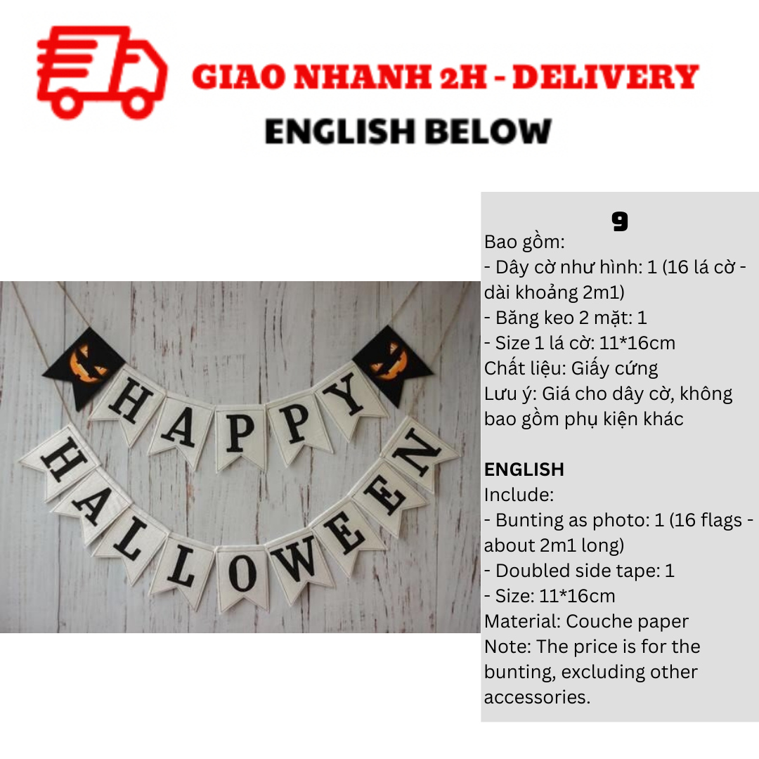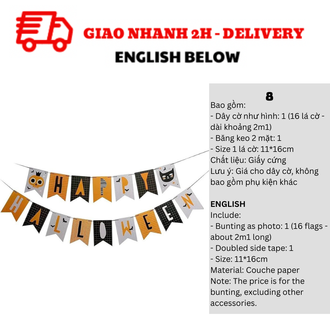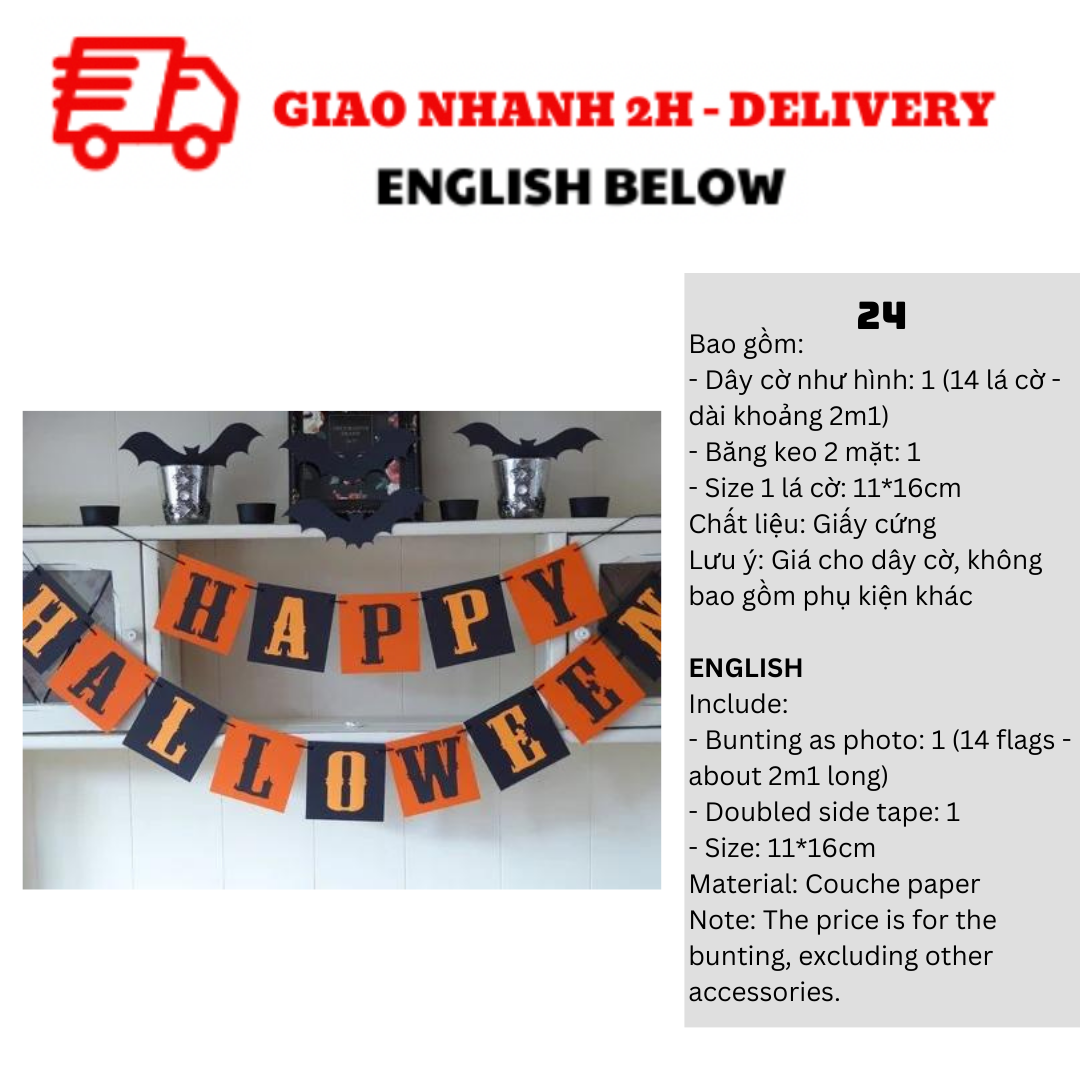 - Dây cờ HAPPY HALLOWEEN như hình: 1