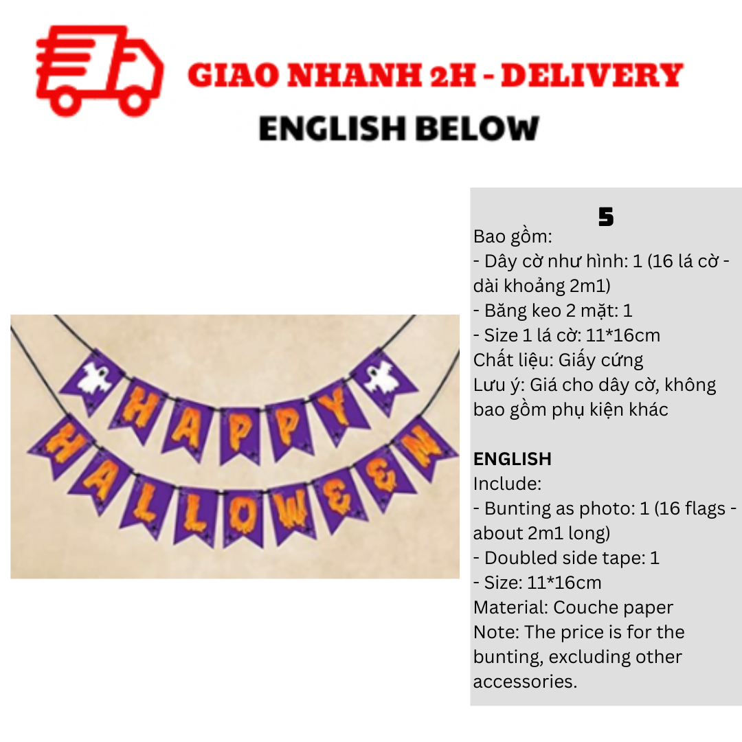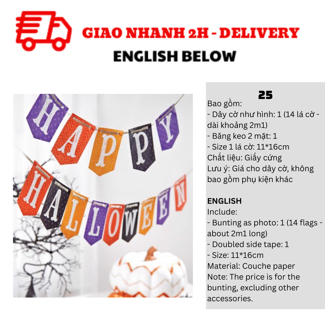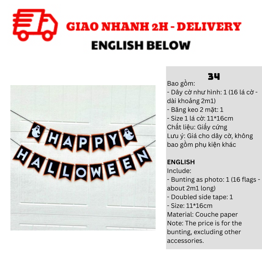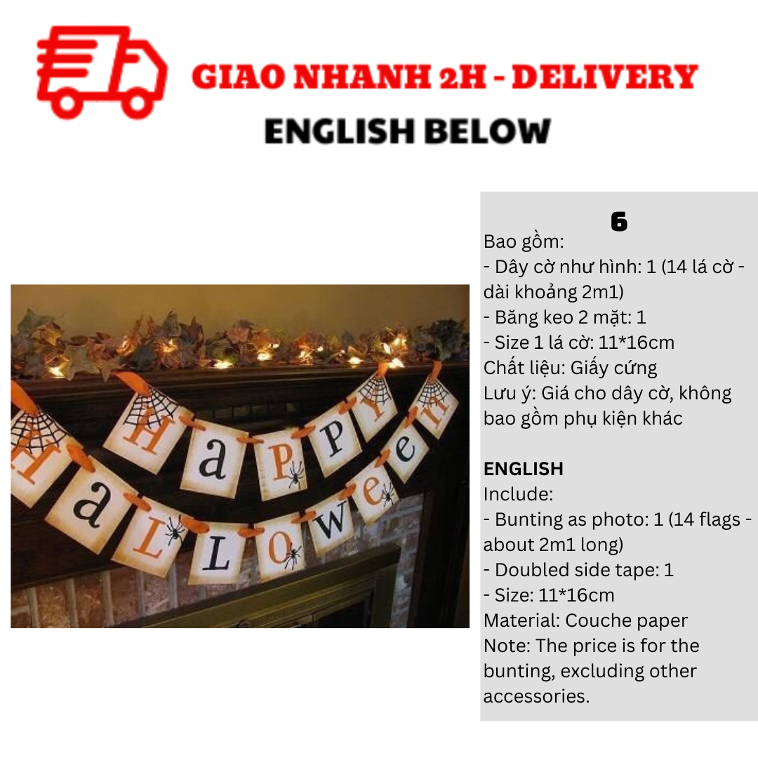 - Dây cờ HAPPY HALLOWEEN như hình: 1