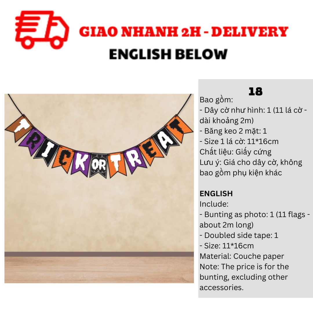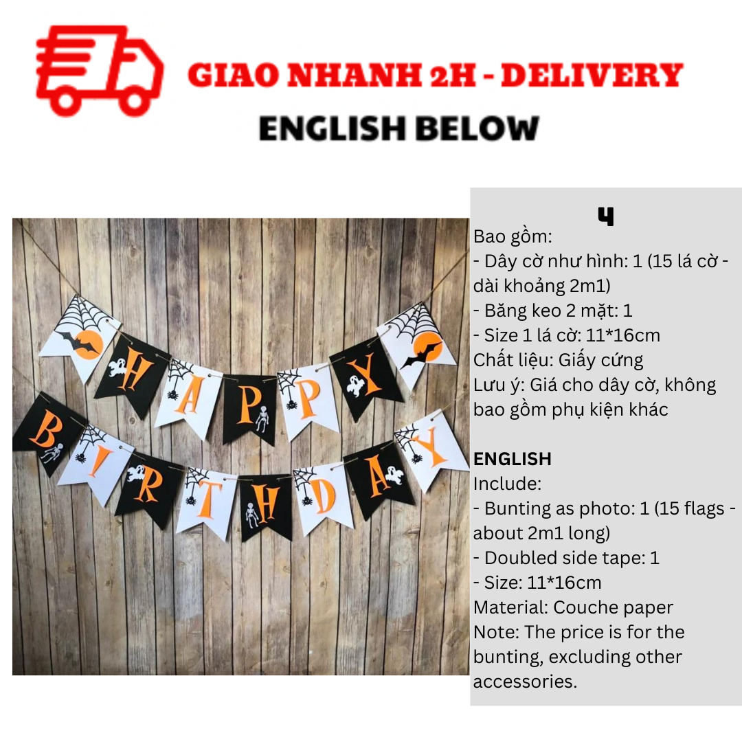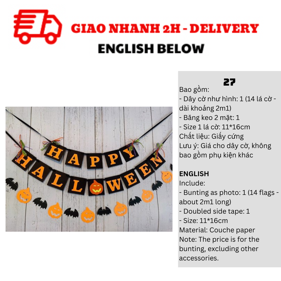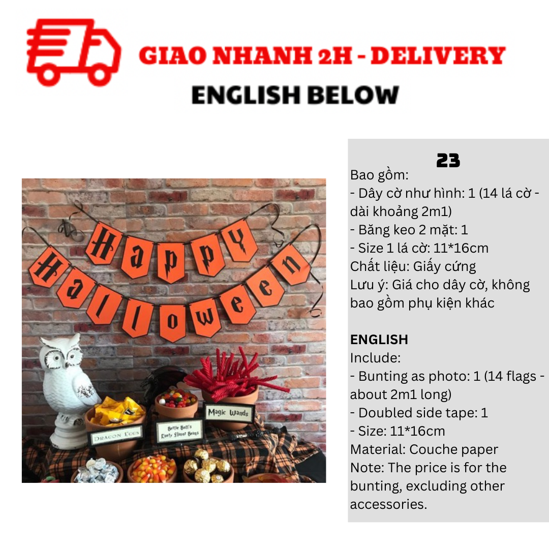 - Dây cờ HAPPY HALLOWEEN như hình: 1
