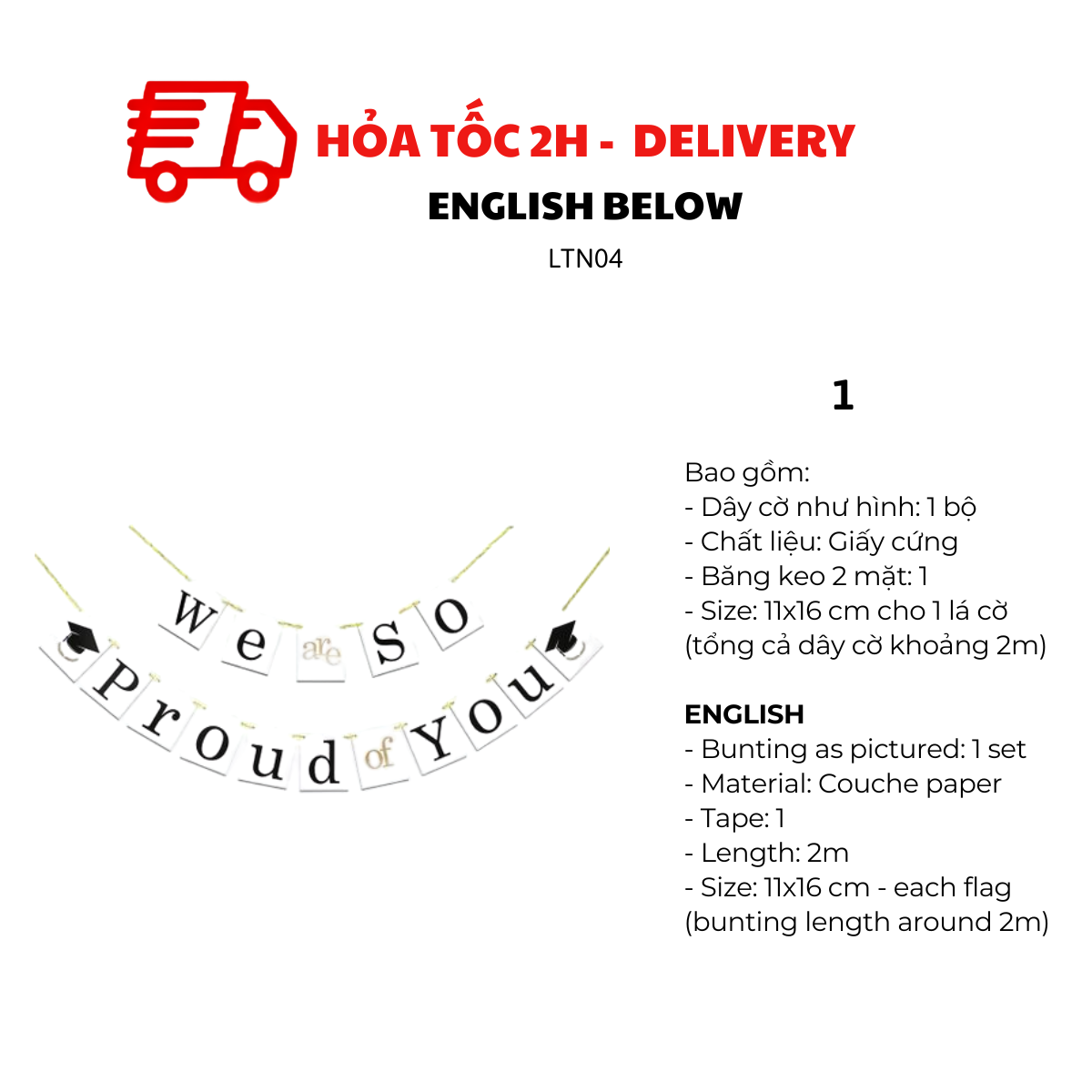 - Size: 11x16 cm cho 1 lá cờ (tổng cả dây cờ khoảng 2m)