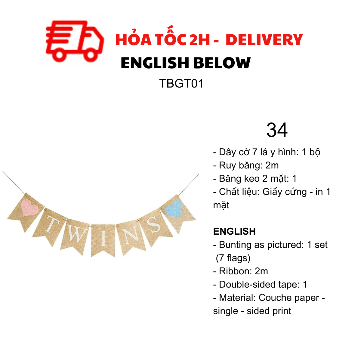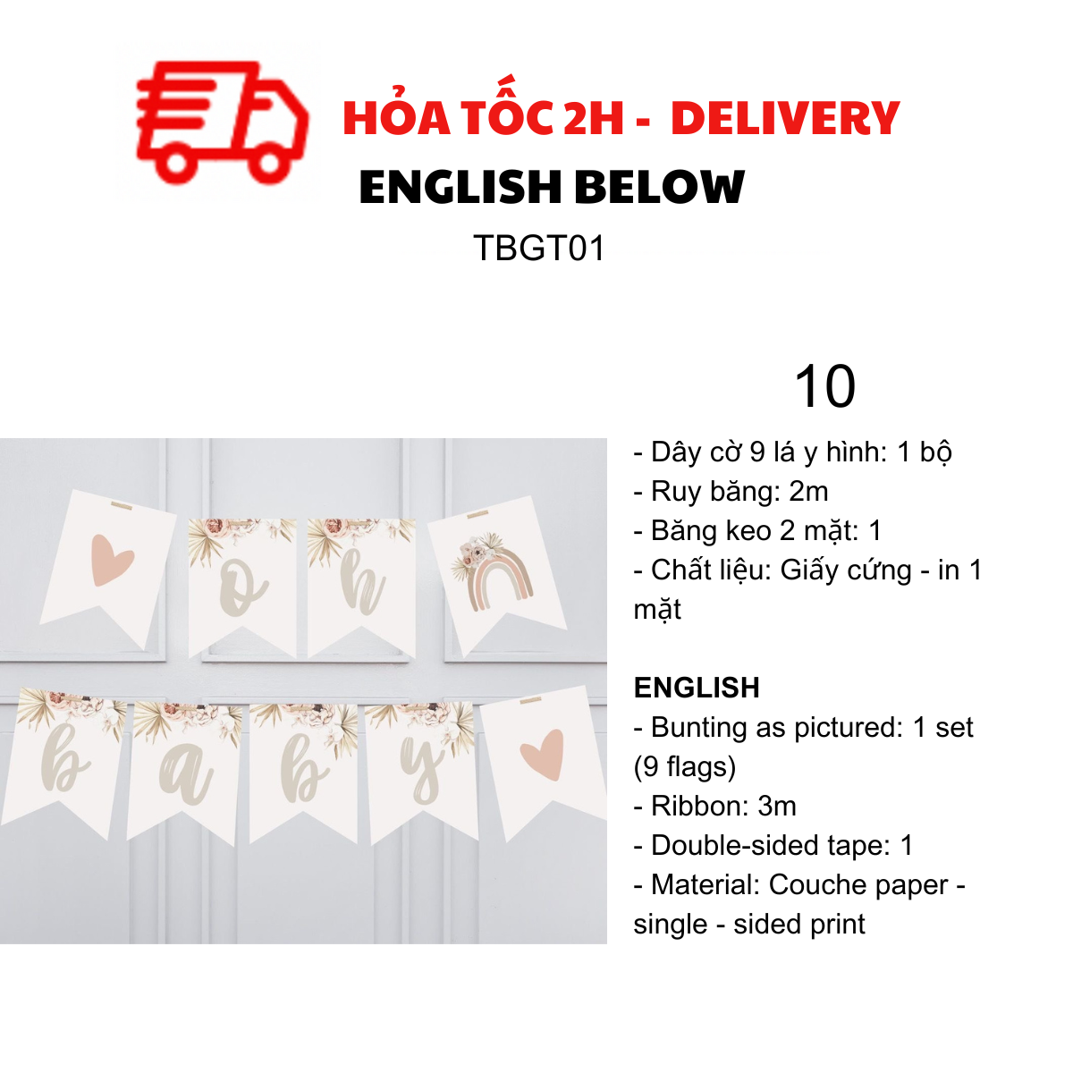 - Bunting as pictured: 1 set (10 flags)