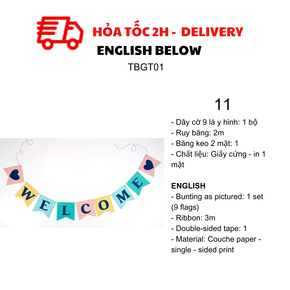 - Bunting as pictured: 1 set ( 11 flags)
