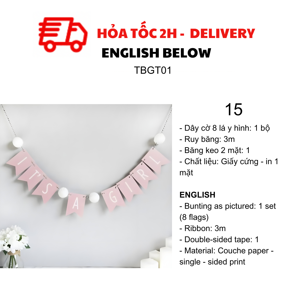 - Dây cờ 15 lá y hình: 1 bộ