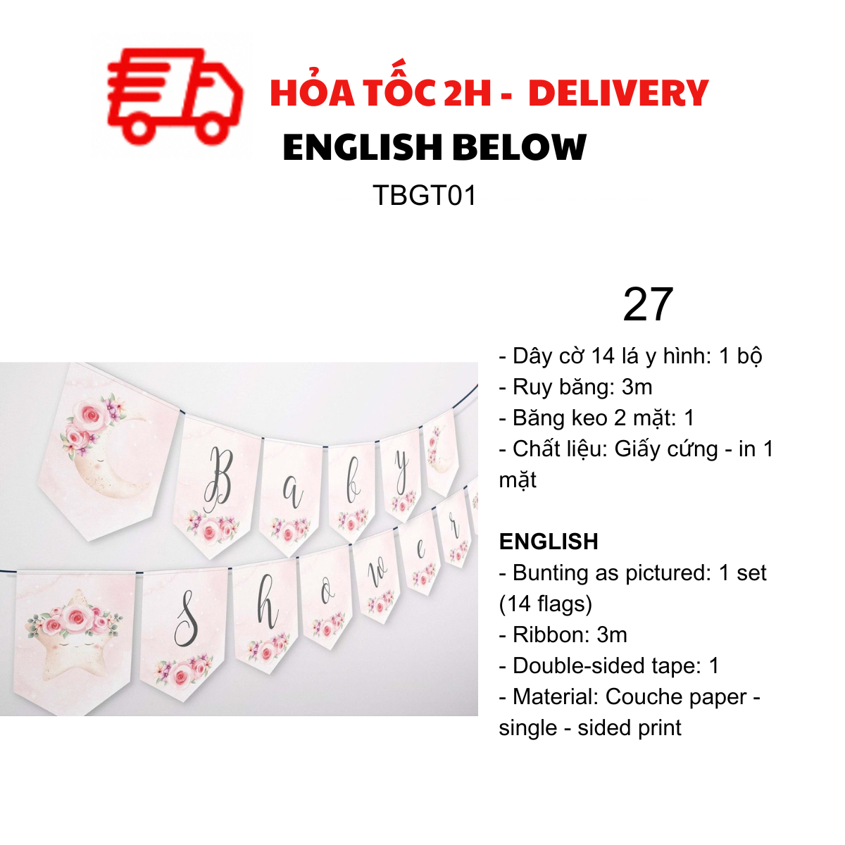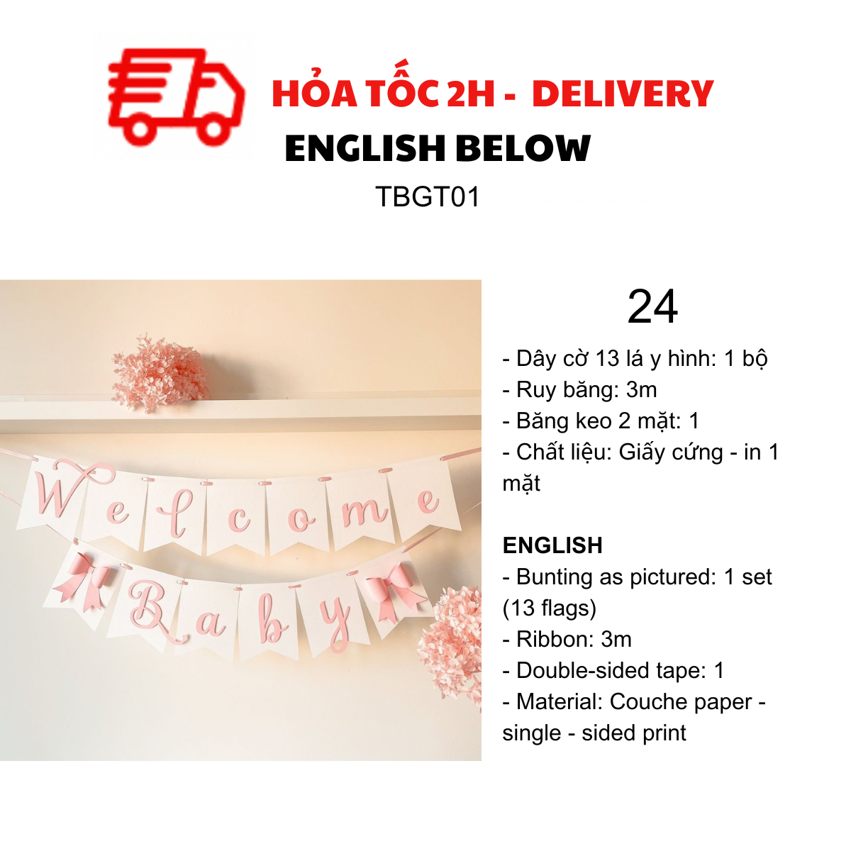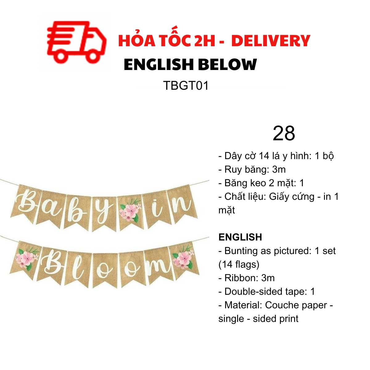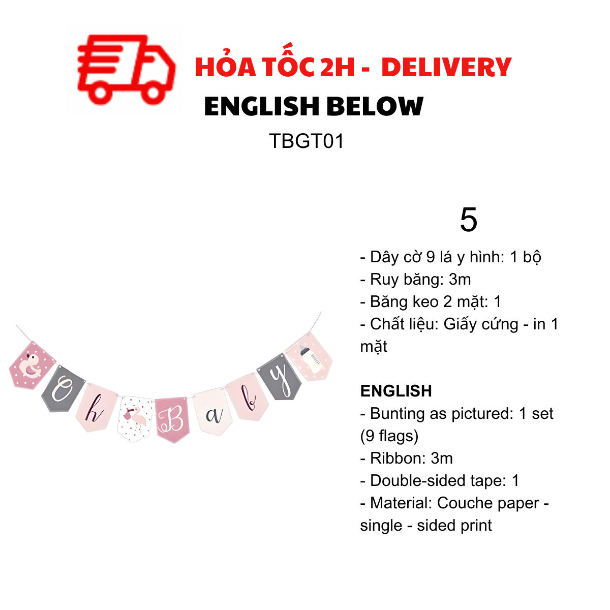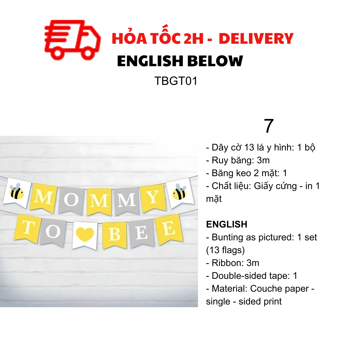 DÂY CỜ TRANG TRÍ TIỆC BABY SHOWER, MOMMY TO BE TBGT01