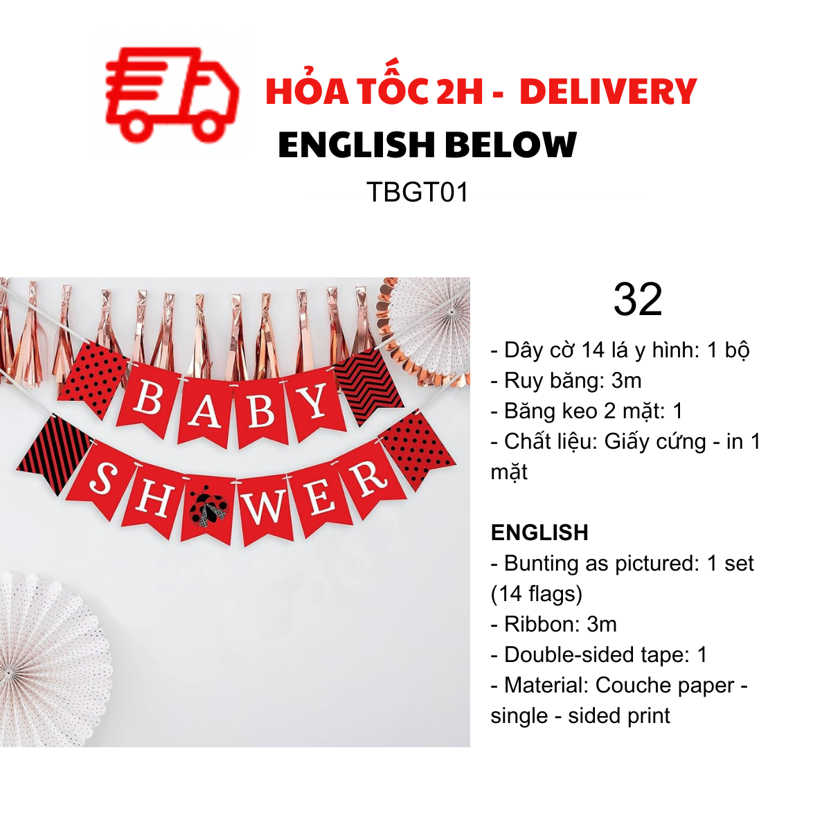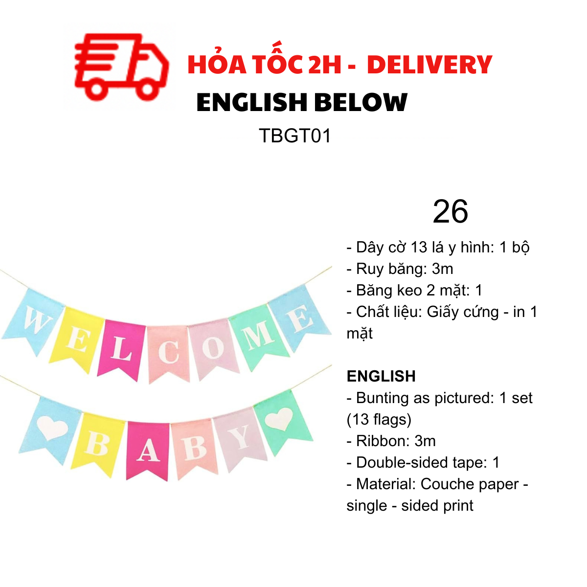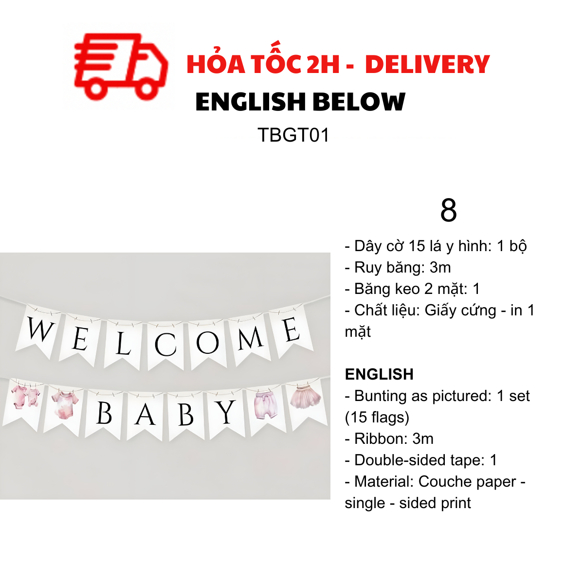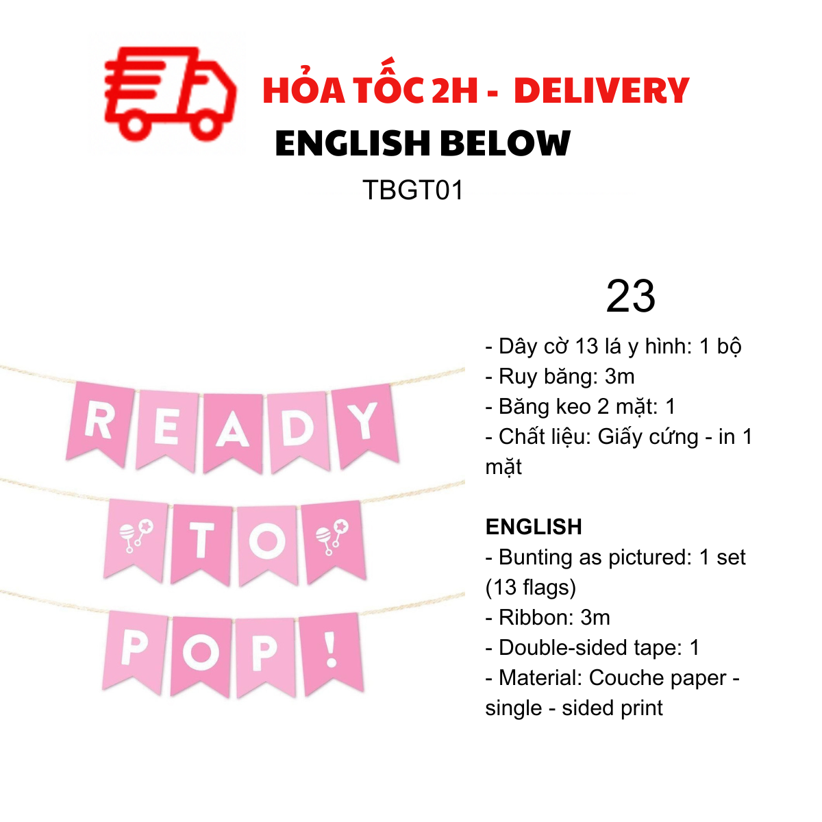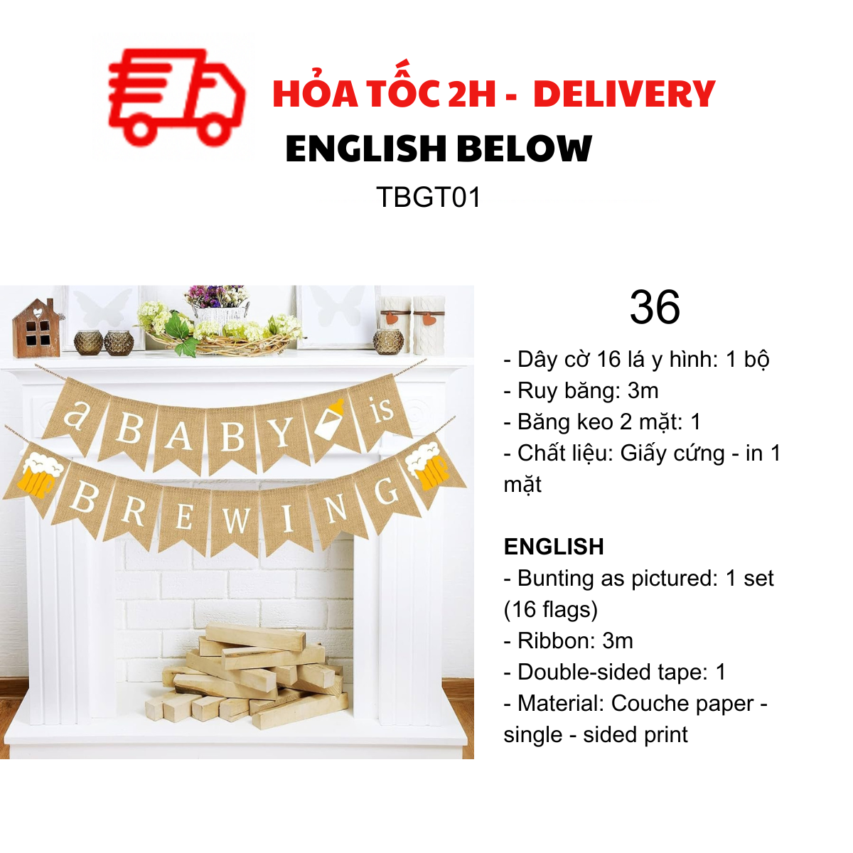 DÂY CỜ TRANG TRÍ TIỆC BABY SHOWER, MOMMY TO BE TBGT01