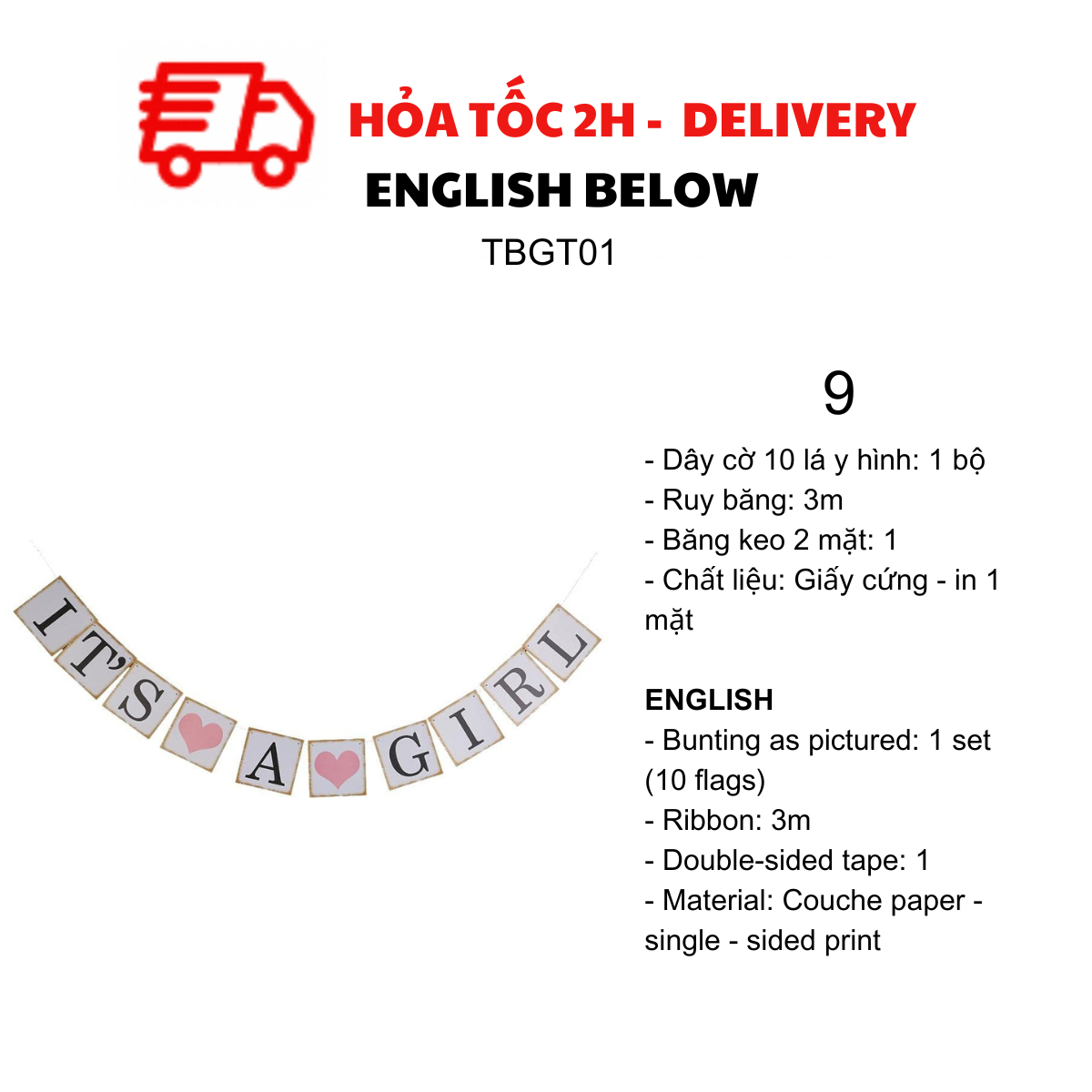 - Bunting as pictured: 1 set (9 flags)