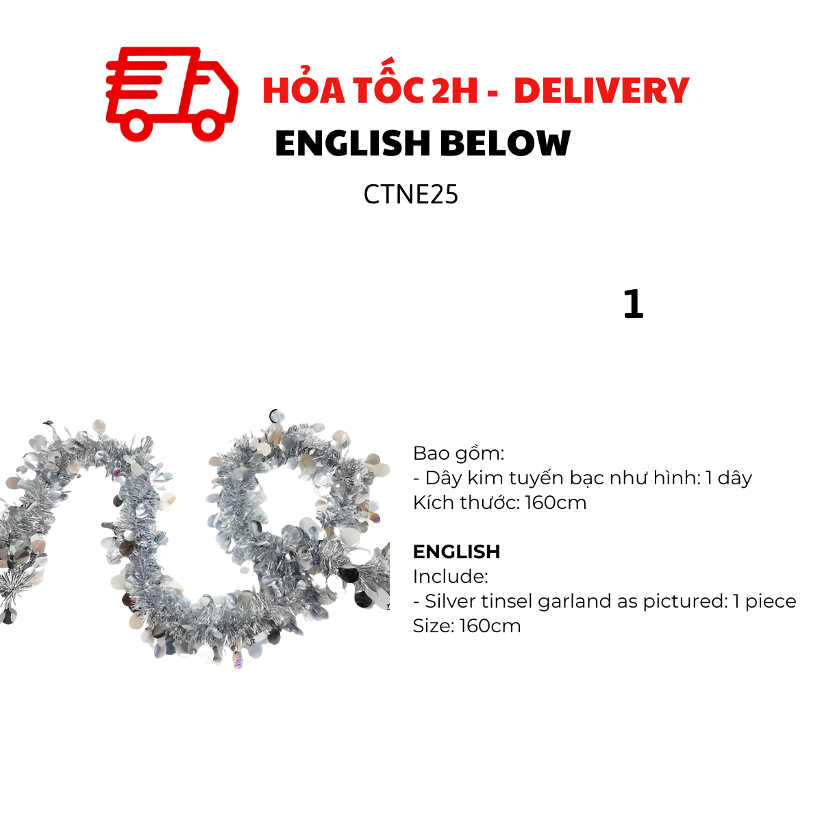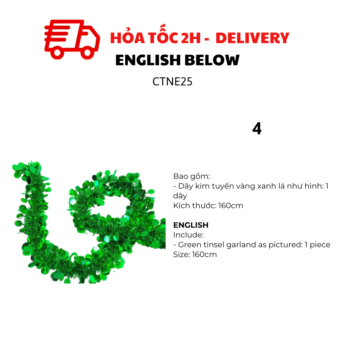 TINSEL GARLAND FOR CHRISTMAS TREE DECORATIONS CTNE25