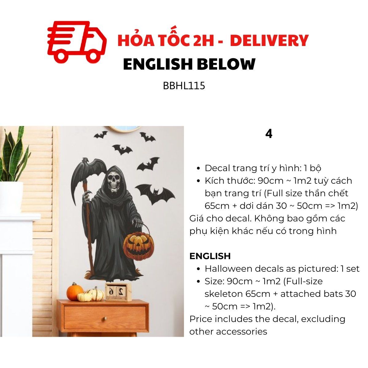 DECAL DÁN KÍNH, DÁN TƯỜNG TRANG TRÍ HALLOWEEN BBHL115