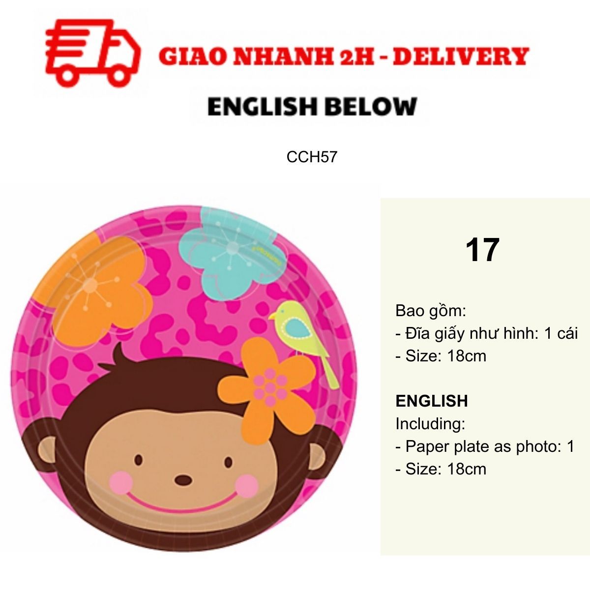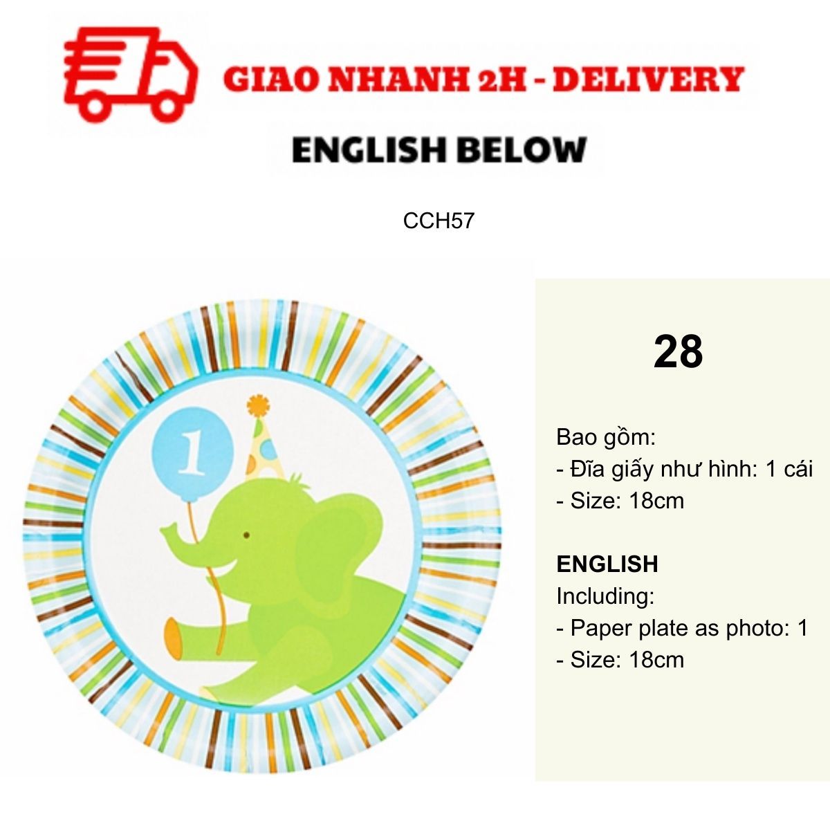 Làm cho bàn tiệc thêm sinh động với đĩa giấy họa tiết đẹp mắt, kích thước 18cm hoàn hảo để phục vụ bánh ngọt, trái cây và đồ ăn nhẹ. Chất liệu giấy dày, chắc chắn, an toàn cho thực phẩm, thân thiện với môi trường.