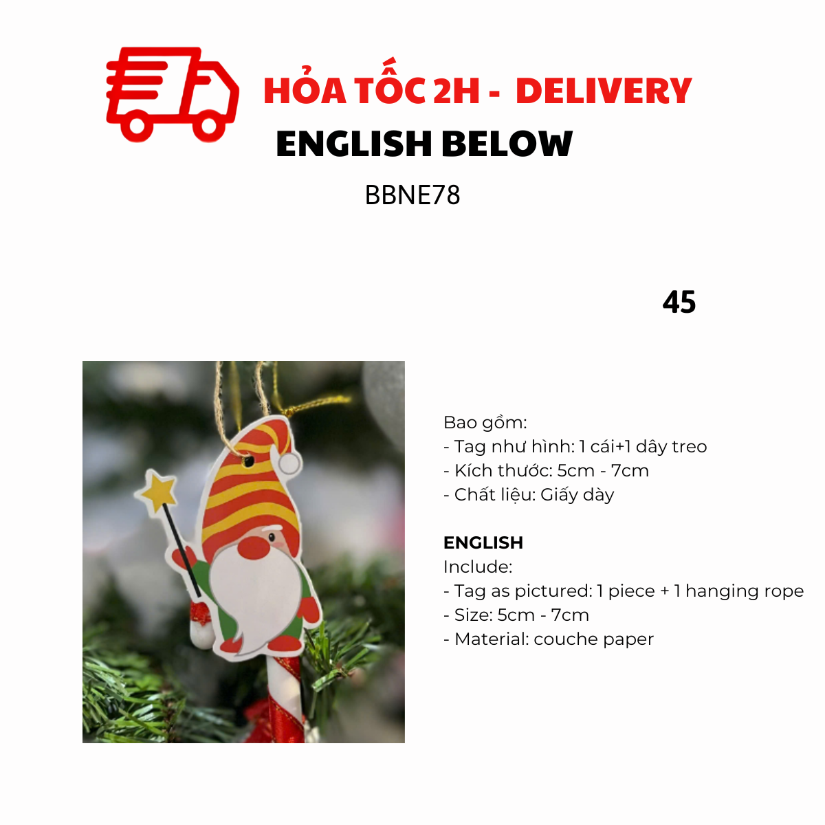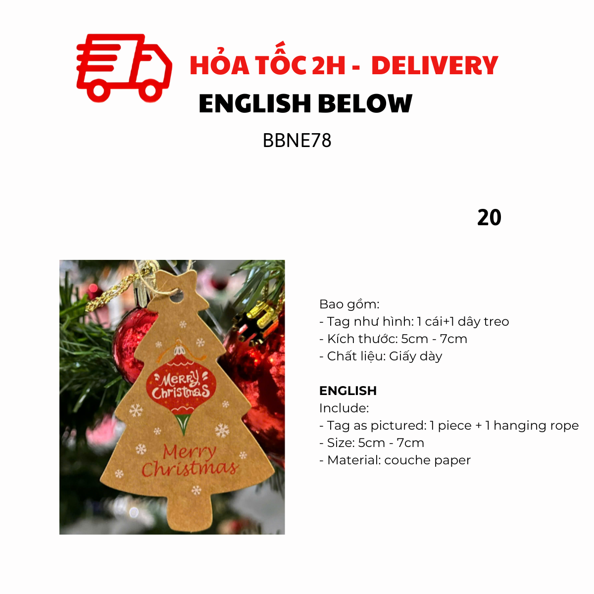 - Tag như hình: 1 cái + 1 dây treo