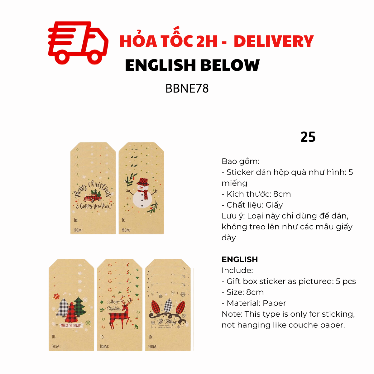 CHRISTMAS GIFT TAGS AND STICKERS FOR DECORATION BBNE88