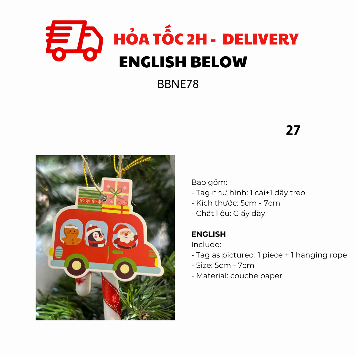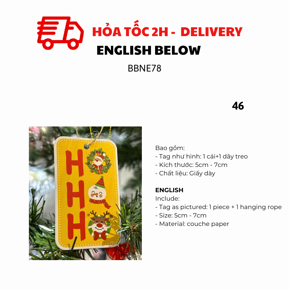- Tag as pictured: 1 piece + 1 hanging rope
