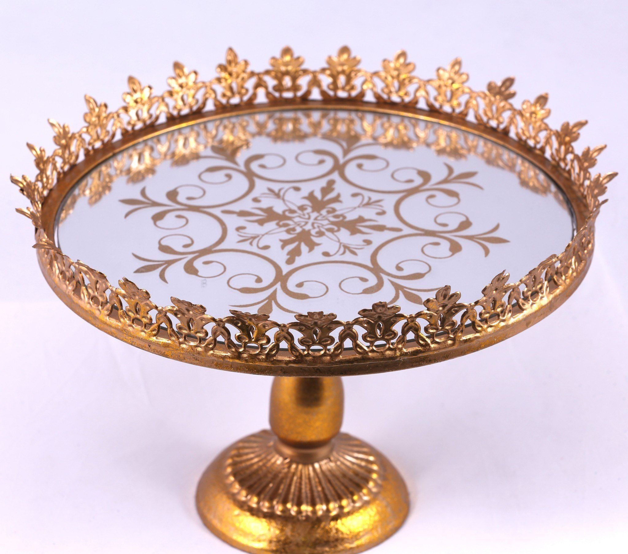 Giá bánh kem kiểu vương miện vàng được thiết kế Thiết kế sang trọng với bề mặt gương, họa tiết chạm khắc hình vương miện màu vàng kim ấn tượng. Chiếc giá bánh kem này giúp cho bữa tiệc của bên thêm nổi bật, giúp thể hiện vẻ đẹp của chiếc bánh của bạn với khách mời giúp họ tập trung ánh mắt vào chiếc bánh.
