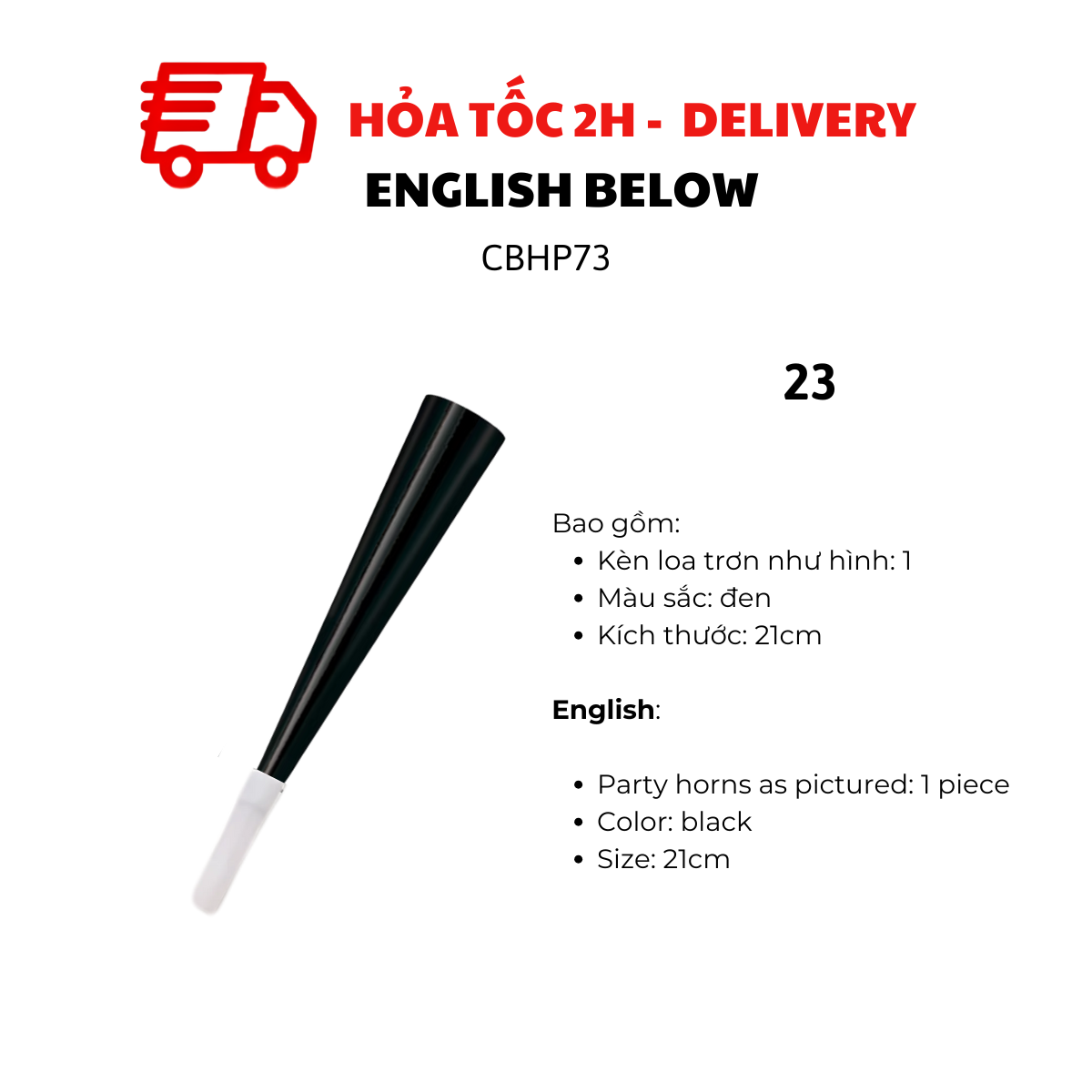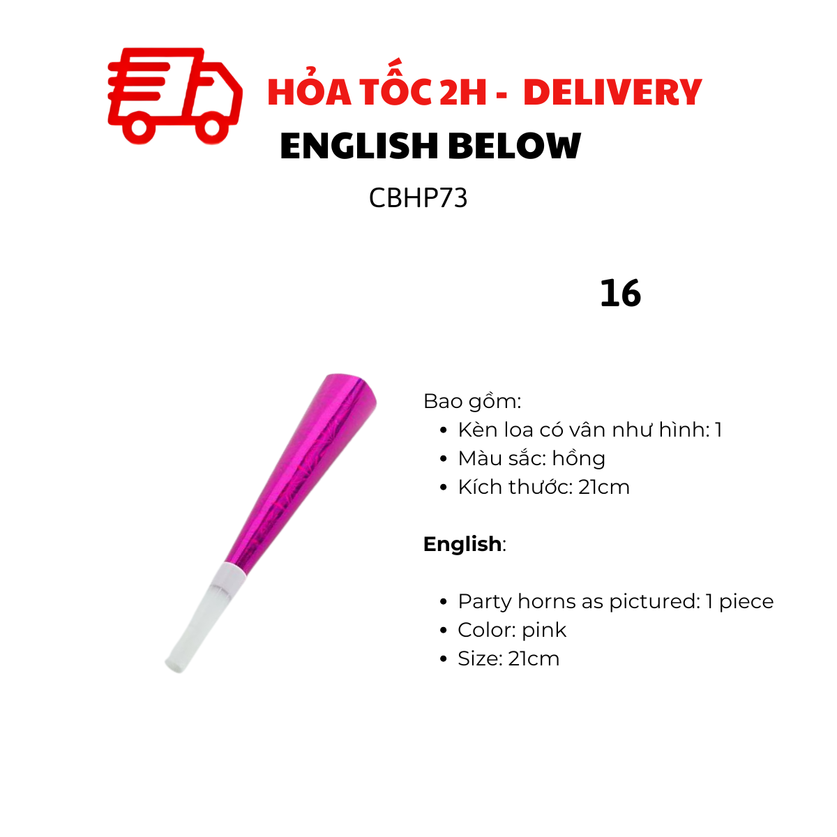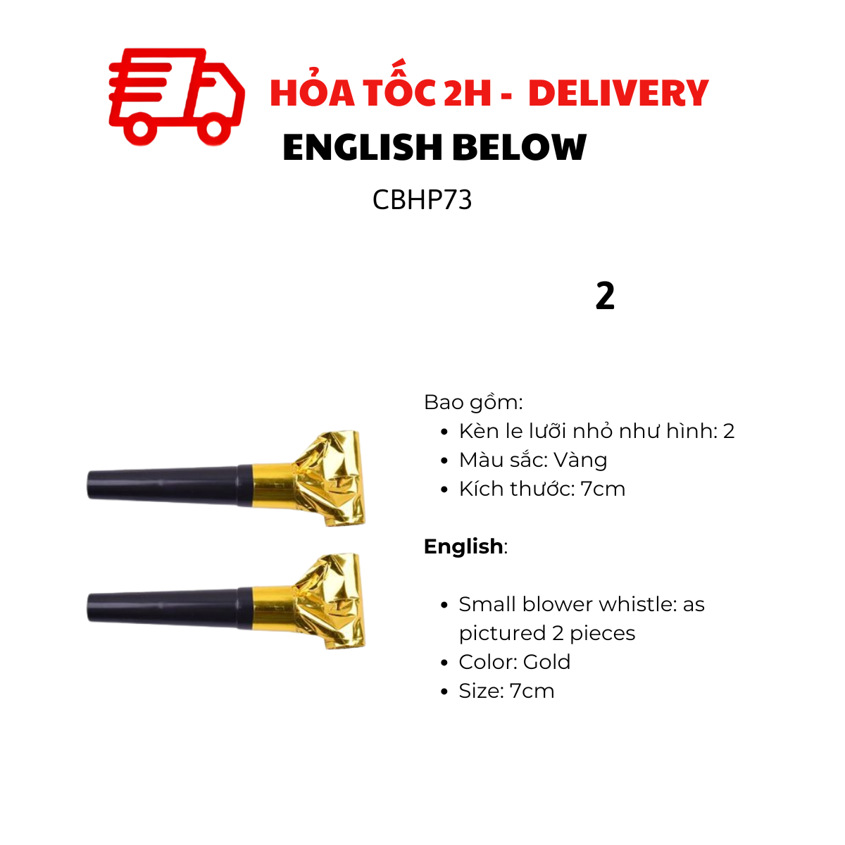 - Party horns as pictured: 2 pieces