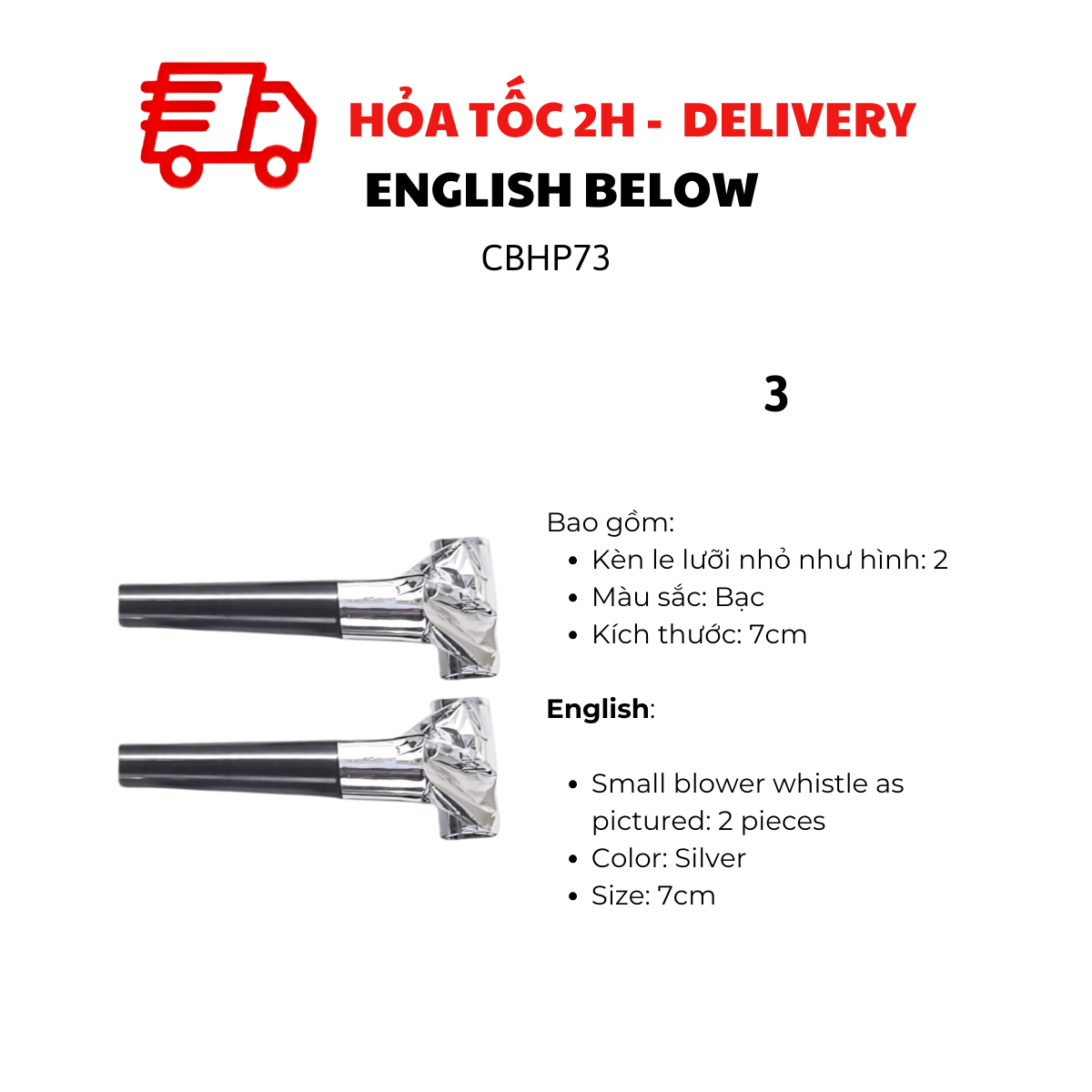- Big blower whistle as pictured: 2 pieces